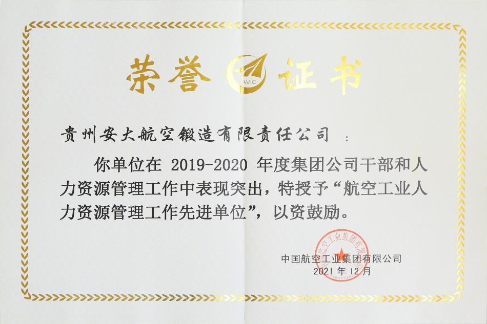 近日,航空工业根据《中国航空工业集团有限公司人力资源管理工作先进评选表彰办法》(航空党组〔2021〕55号)文件评选出2019-2020年度集团干部和人力资源工作中表现突出的9个集体和 ...