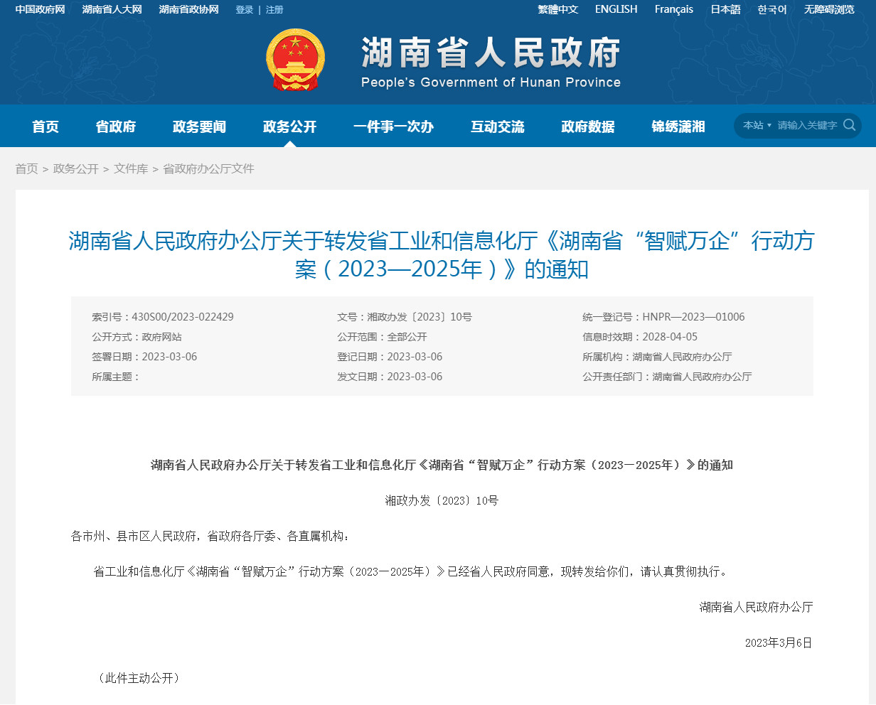 近日,湖南省人民政府办公厅发布关于转发省工业和信息化厅《湖南省“智赋万企”行动方案(2023—2025年)》的通知,其中提出,到2025年,数字经济与实体经济融合取得显著成效,企业 ...