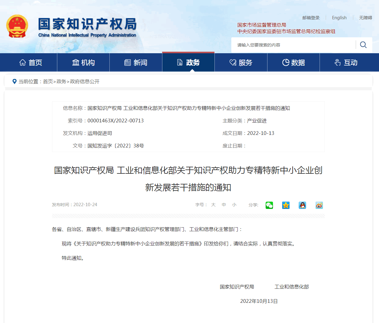国知局 工信部:关于知识产权助力专精特新中小企业创新发展若干措施