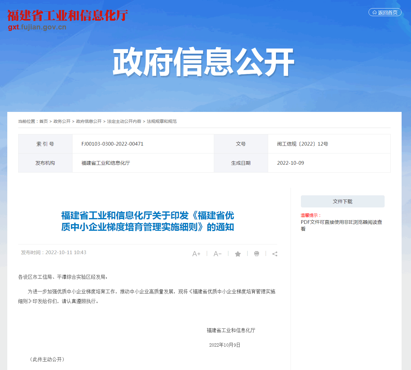 《福建省优质中小企业梯度培育管理实施细则》出台 将对优质中小企业实施梯度培育
