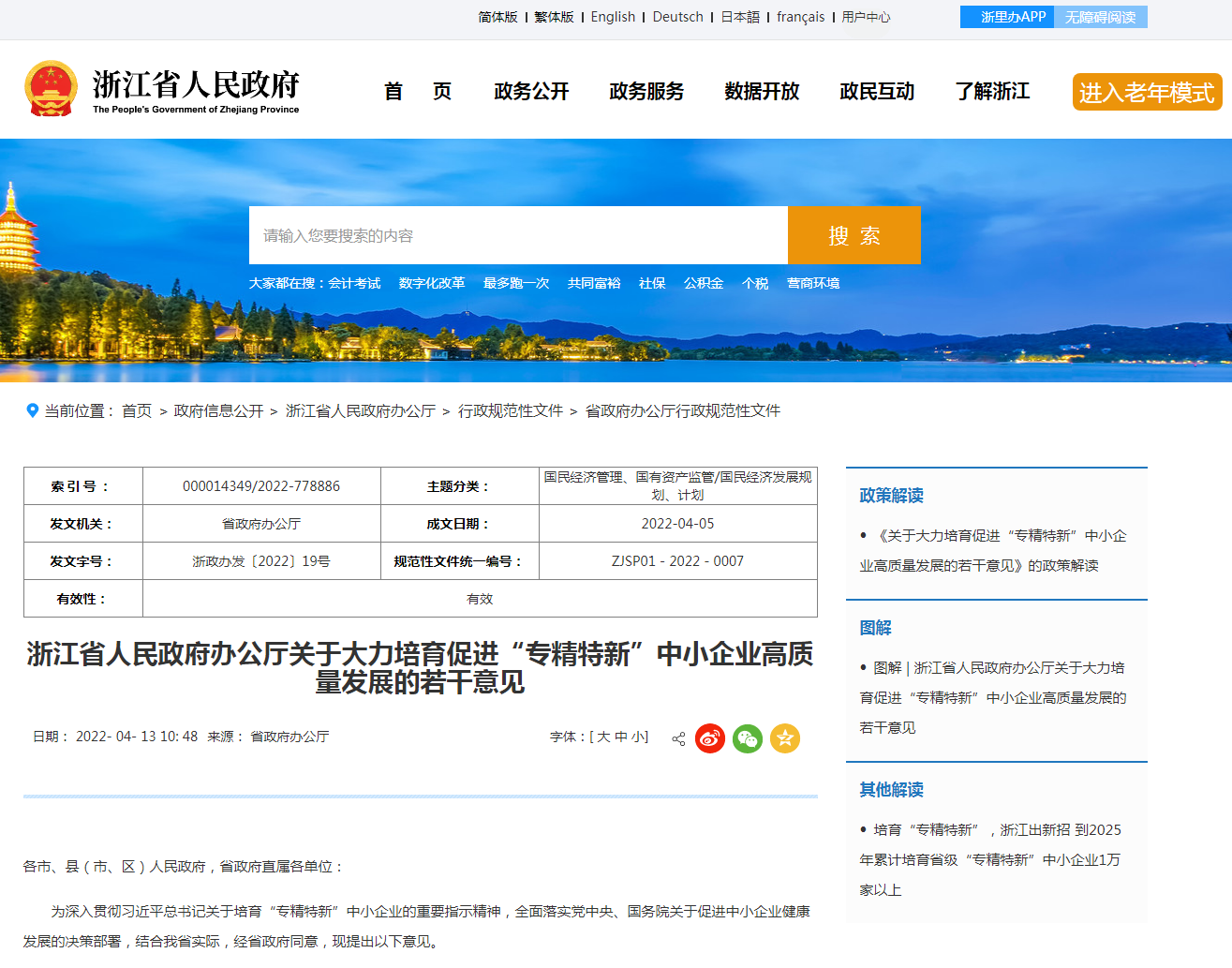 近日,浙江省人民政府办公厅印发《关于大力培育促进“专精特新”中小企业高质量发展的若干意见》(以下简称《意见》),以数字化改革为牵引,深入实施新一轮制造业“腾笼 ...