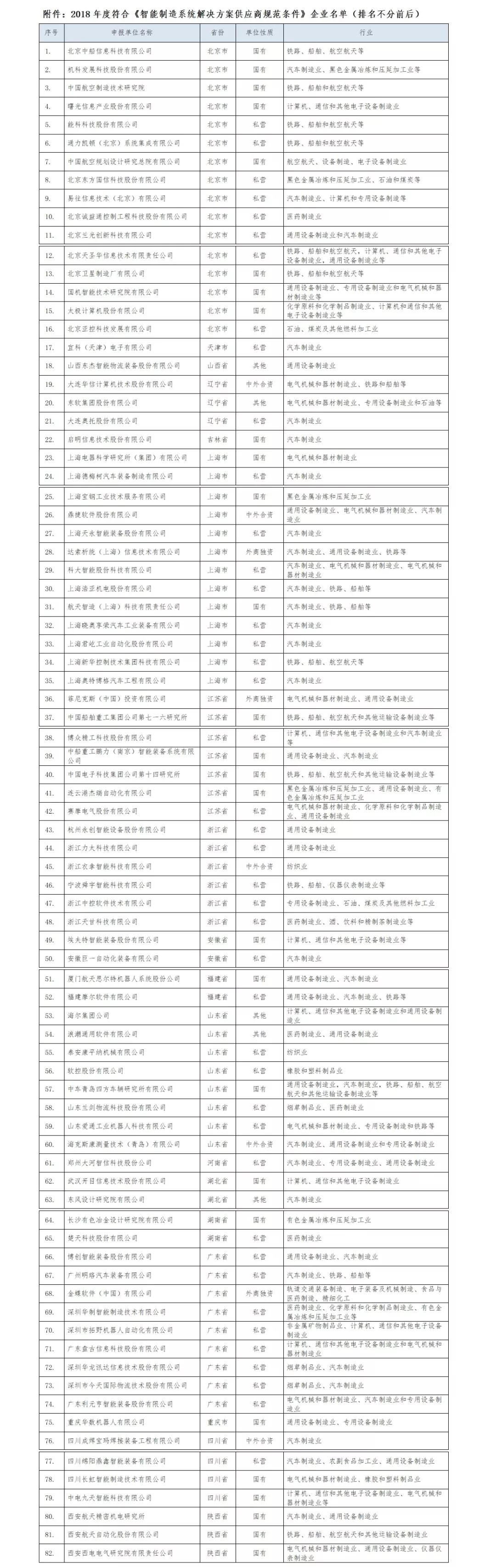 2018年度符合《智能制造系统解决方案供应商规范条件》 企业名单公布