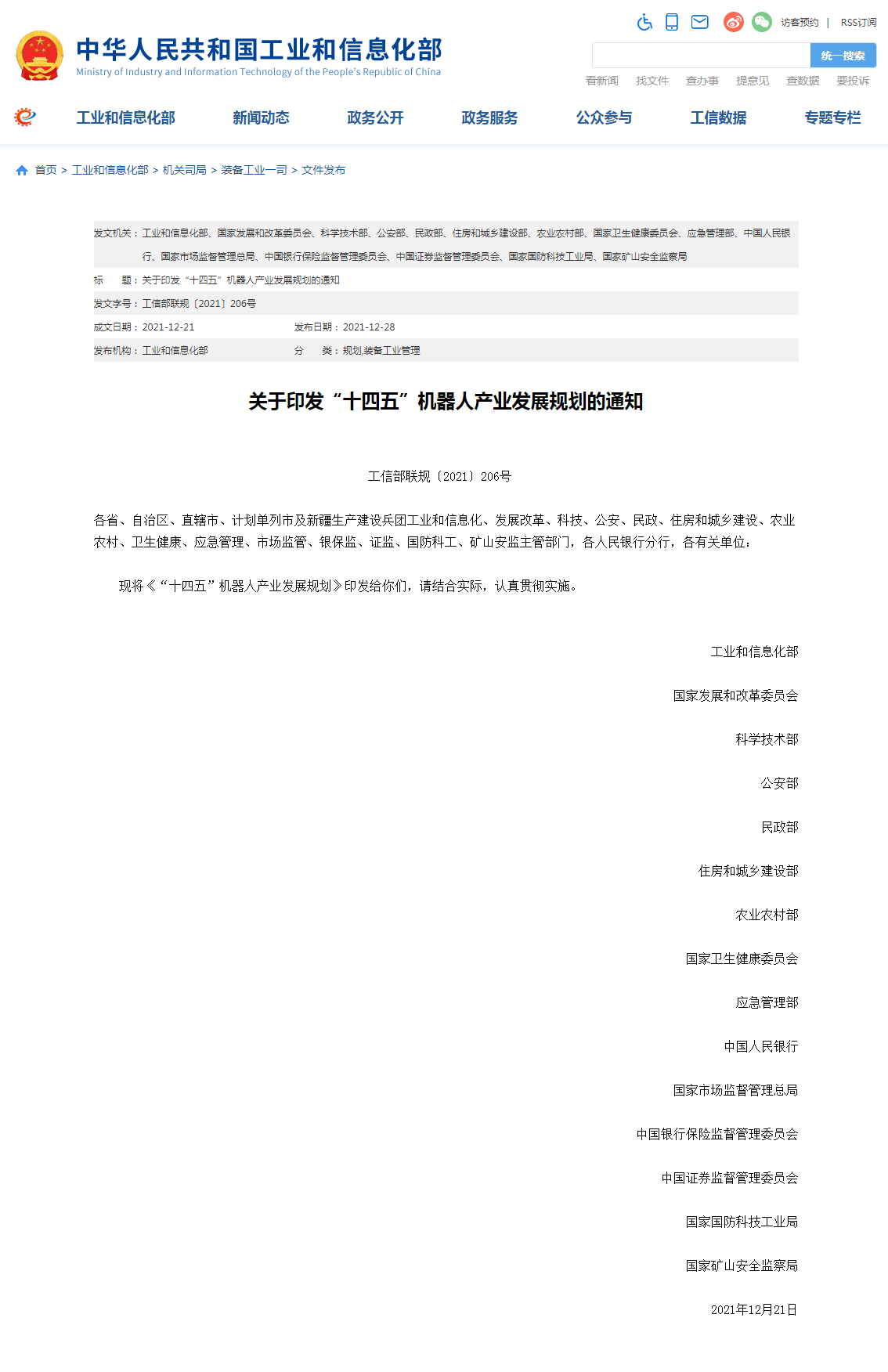 12月28日,工业和信息化部、国家发改委等八部门正式印发《“十四五”智能制造发展规划》(以下简称《规划》),就深入实施智能制造工程,着力提升创新能力、供给能力、支撑能力 ...