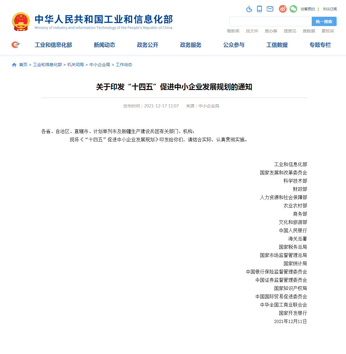 工信部等十九部门联发《规划》 凝聚力量 促进“十四五”中小企业创新发展