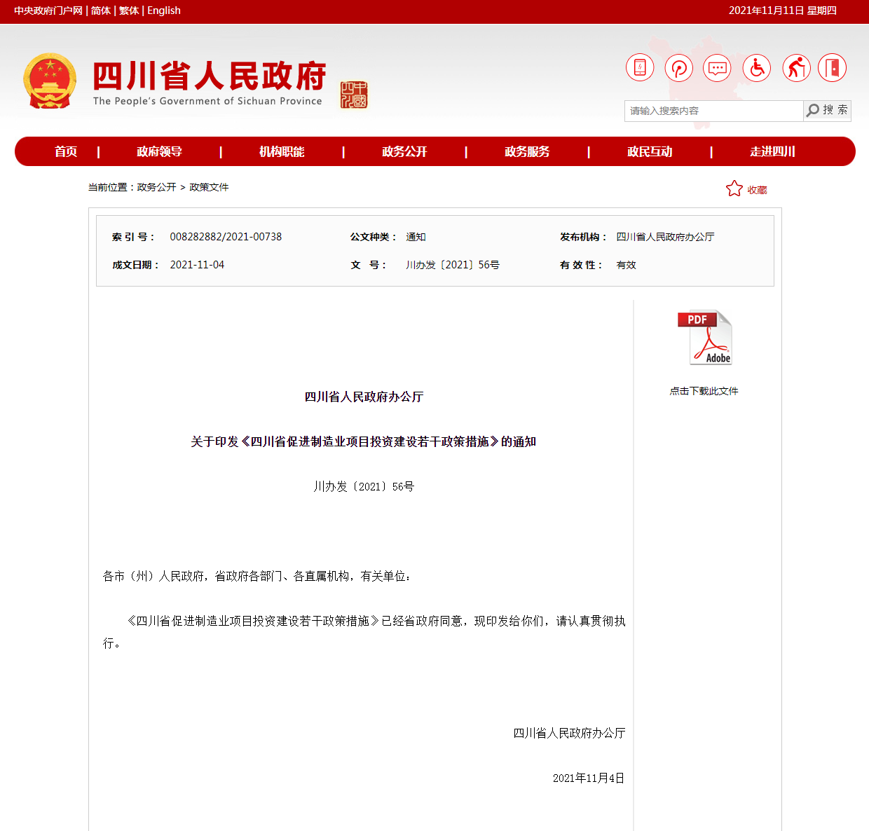为促进制造业项目投资建设,推动工业经济高质量 发展,加快建设制造强省,四川省政府办公厅近日印发了《四川省促进制造业项目投资建设若干政策措施》,自印发之日起实行,有效 ...