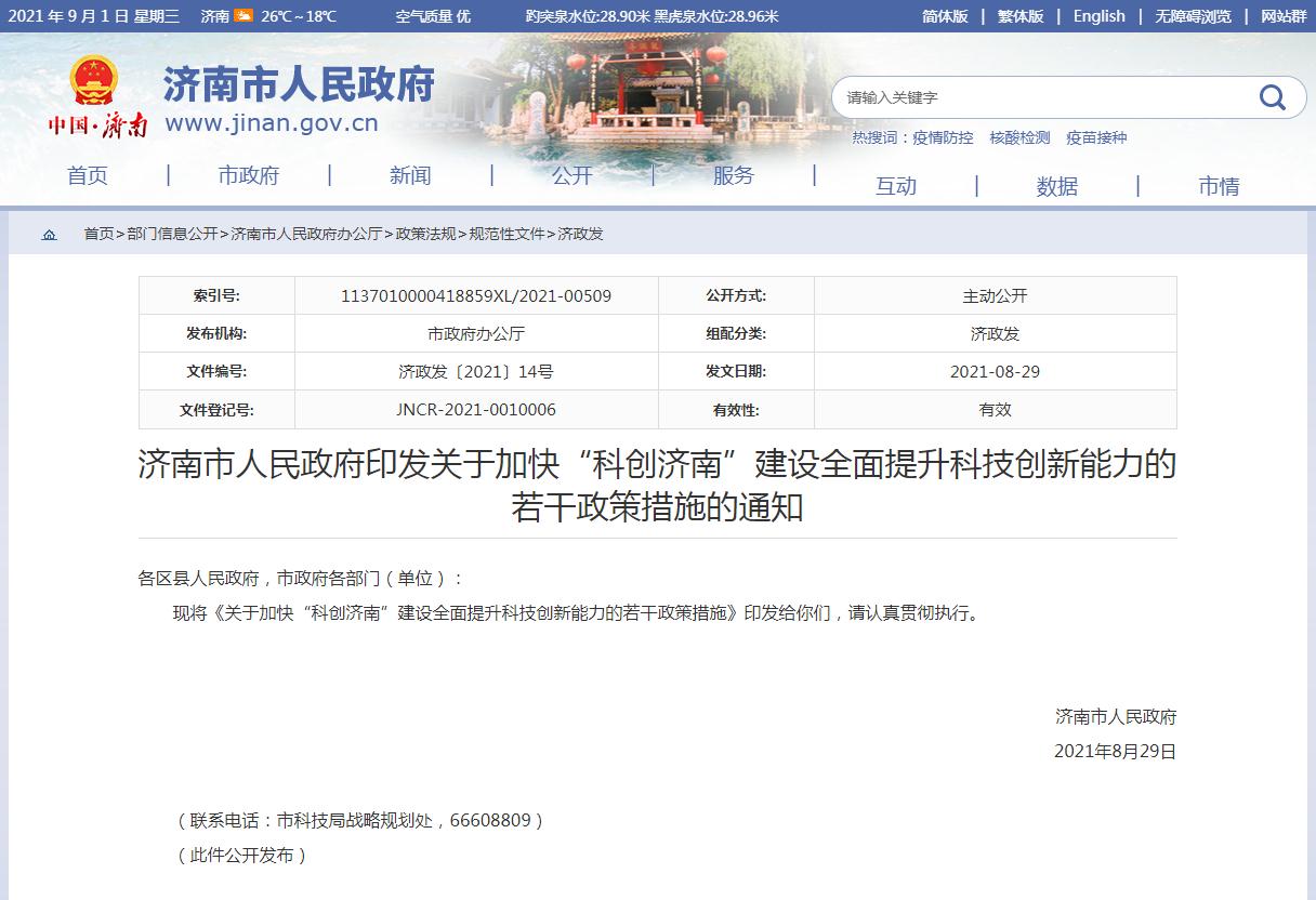 近日,济南市政府印发了《关于加快“科创济南”建设全面提升科技创新能力的若干政策措施》。济南明确提出,将高标准建设齐鲁科学城,支持高水平实验室建设,努力培育国家实 ...