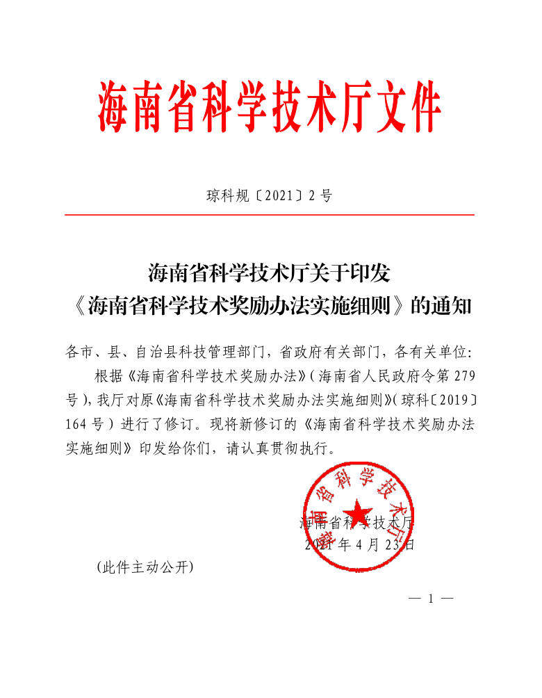 海南省科技厅近日印发《海南省科学技术奖励办法实施细则》(以下简称《细则》),对全省科学技术奖励作出全面具体的规定。《细则》自5月22日起实施。 《细则》对四个类别奖 ...