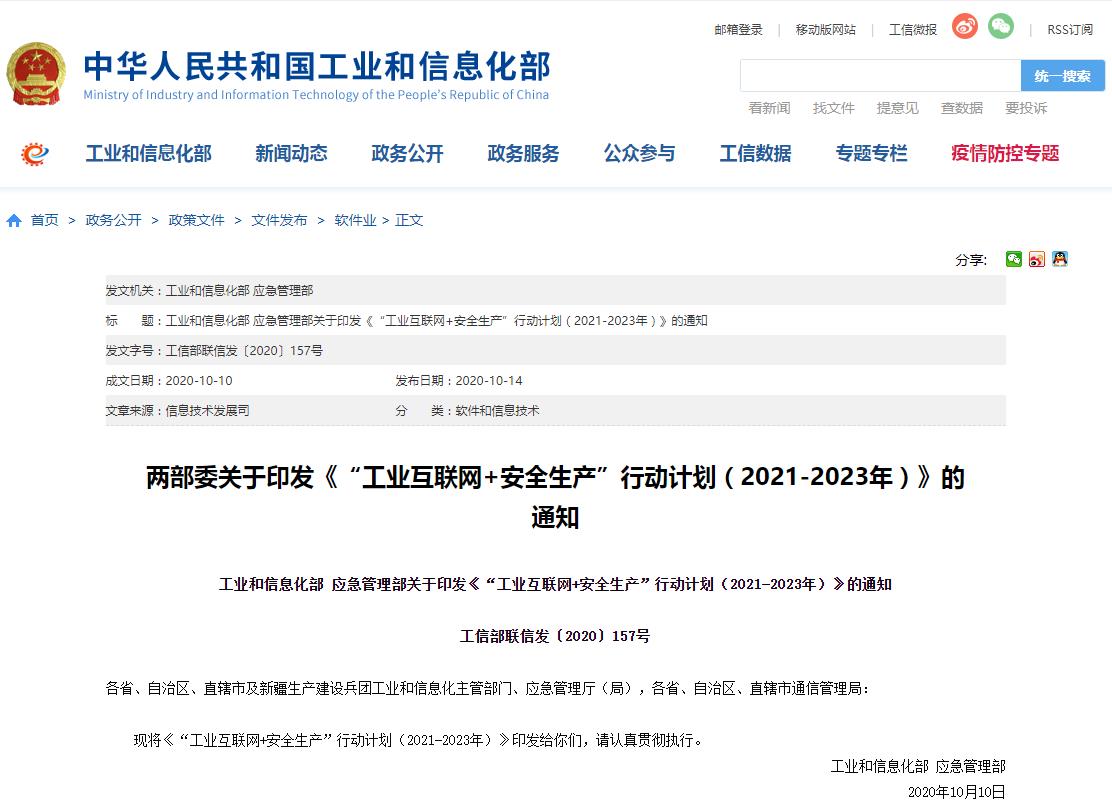 近日,工业和信息化部、应急管理部联合发布了《“工业互联网+安全生产”行动计划(2021-2023年)》(工信部联信发〔2020〕157号,下称《行动计划》),现就《行动计划》有关内容 ...