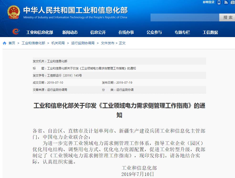 据工业和信息化部7月19日消息,为进一步完善工业领域电力需求侧管理工作体系,指导工业企业(园区)优化用电结构、调整用电方式、优化电力资源配置,促进工业转型升级,工信部印发 ...