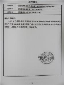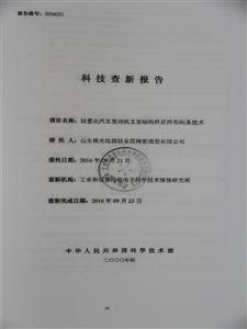 2016年9月27日,全国工业和信息化科技成果转化联盟在北京主持召开了成果方自主研发的“汽车发动机、变速箱镁合金支架类结构件压铸工艺技术”科技成果评价会。评价委员会听取了项目完成单位的技术总结报告,对项目资料进行了审查和质询,经讨论形成意见如下: