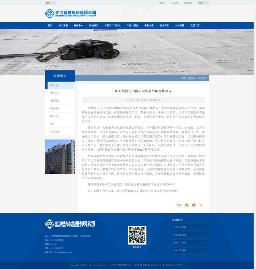 12月6日,矿冶集团与中南大学在长沙签署战略合作协议,并围绕深化科技与人才合作、实现共赢发展开展座谈交流。矿冶集团党委书记、董事长韩龙,中南大学校长、中国工程院院士李建 ...