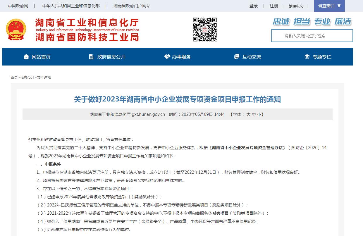 日前,湖南省工业和信息化厅发布《关于做好2023年湖南省中小企业发展专项资金项目申报工作的通知》。根据通知,2023年省中小企业发展专项资金重点支持以下几类项目: 专精 ...