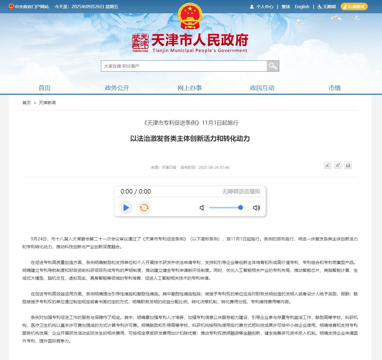 9月24日,天津市十八届人大常委会第二十一次会议审议通过了《天津市专利促进条例》(以下简称条例),自11月1日起施行。条例的颁布施行,将进一步激发各类主体创新活 ...