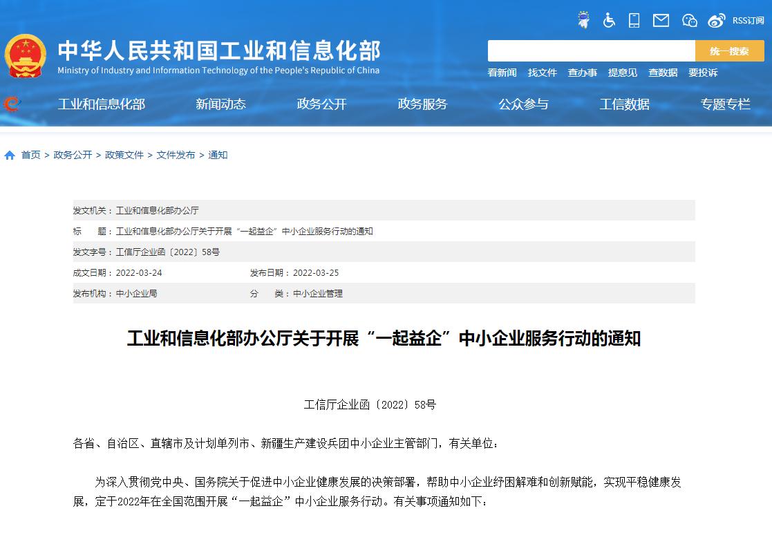 工业和信息化部近日印发《关于开展“一起益企”中小企业服务行动的通知》,部署今年在全国范围开展中小企业服务行动。服务行动以“宣传政策、落实政策,纾解难题、促进发展 ...