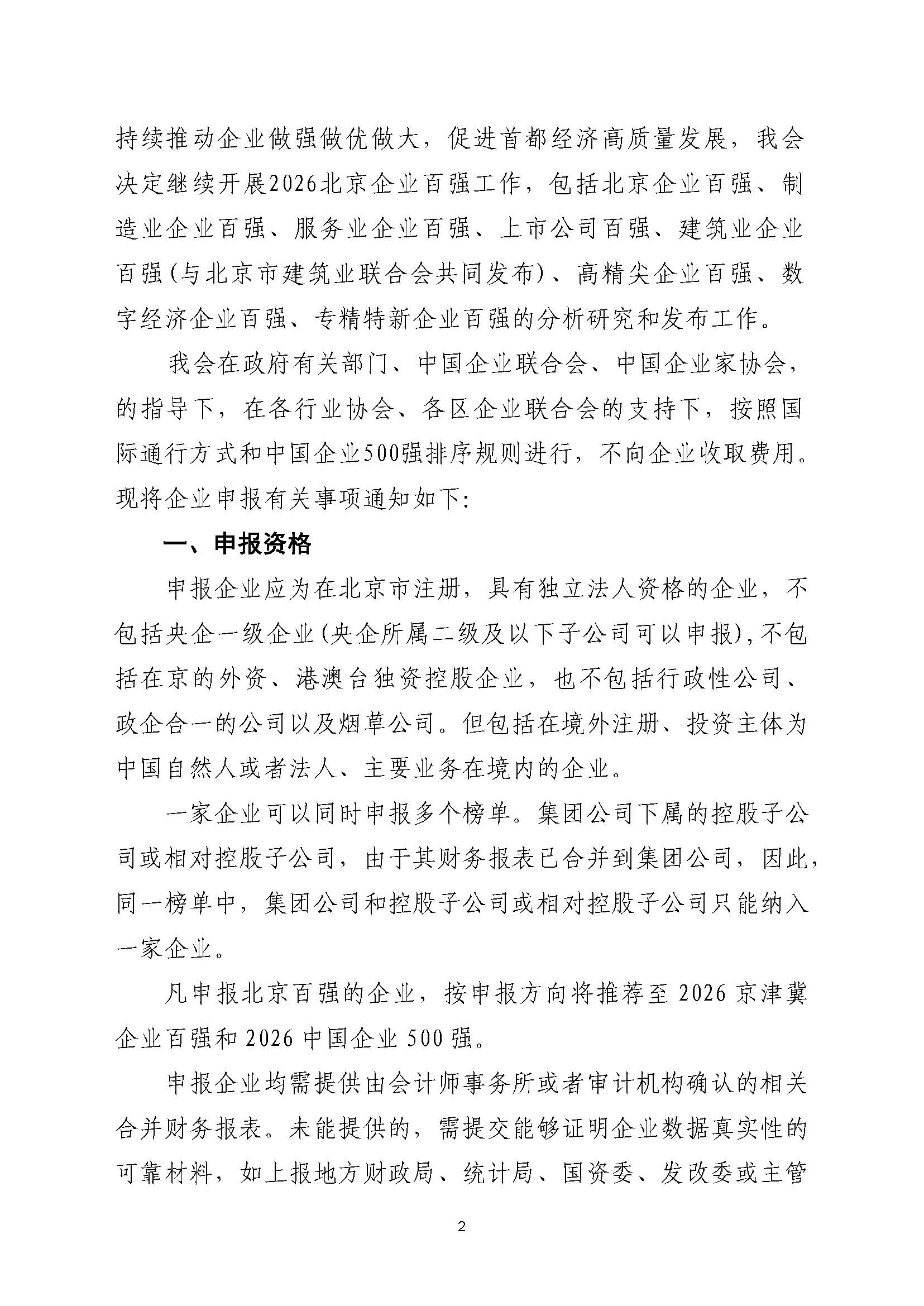 当前位置:首页 > 新闻资讯 > 关于申报2026 北京企业百强的通知