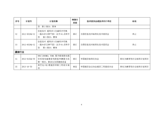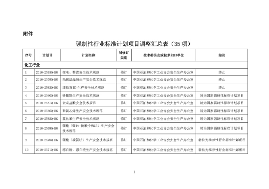 附:强制性行业标准计划项目调整汇总表(35项)