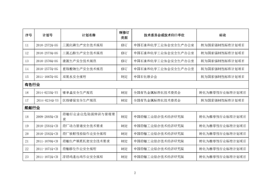 请有关行业协会(联合会)、集团公司、标准化技术归口单位及时组织落实,将文件转发至主要起草单位。同时,做好转为推荐性行业标准计划项目的制修订工作,严把技术审查关,确保标准文本中无强制性内容要求。需调整为强制性国家计划项目的,按照国家标准计划项目程序要求,编报立项建议和标准草案等相关申报材料,按行业报部机关相关司局。相关司局审查同意后送科技司。