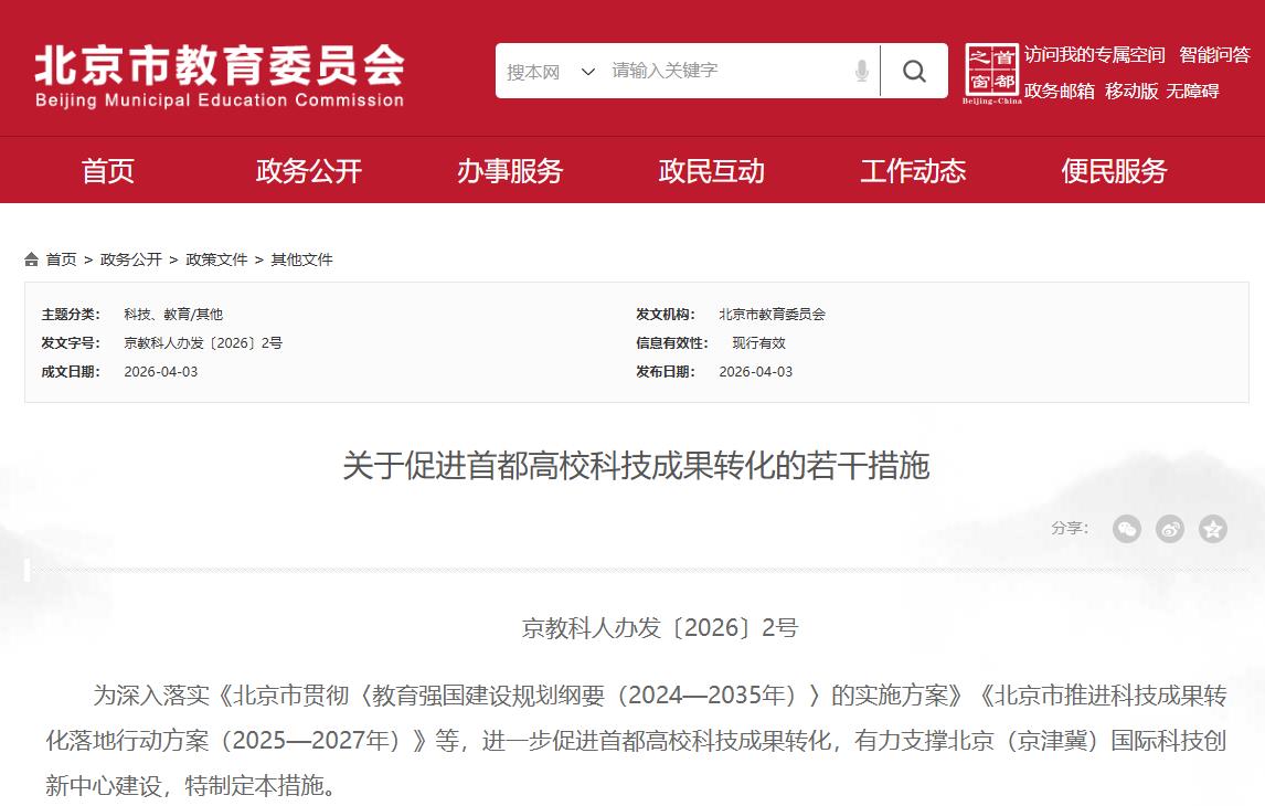 北京近日发布《关于促进首都高校科技成果转化的若干措施》,18条举措推动更多高校科技成果从实验室走向产业一线。