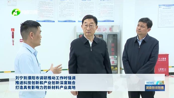 4月15日,河南省委书记刘宁到濮阳市调研推动新材料产业科技创新、安全生产、绿色发展等工作,强调要深入贯彻落实习近平总书记在河南考察时重要讲话精神,推进科技创新和产业创新深度融合,因地制宜发展新质生产力,加快构建现代化产业体系,促进经济社会全面绿色低碳转型,推动经济发展稳中向好、趋新向优、韧性增强。