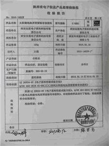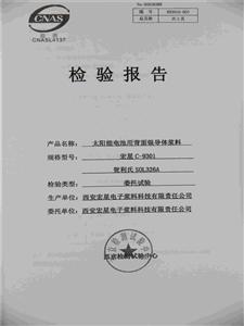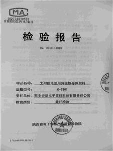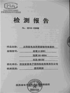 项目单位研发的太阳能电池用背面银导体浆料C-9301,使用无铅环保型玻璃粉,浆料RS低,FF高,Irev小,上述性能指标已经超过陕西省电子信息产品监督检验院检测。