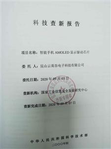 2020年10月30日,中关村中企慧联先进制造产业技术联盟委托北京中企慧联科技发展中心在北京组织召开由昆山云英谷电子科技有限公司研发的“智能手机 AMOLED 显示驱动芯片”科技成果评价会(专家名单附后)。评价委员会听取了项目完成单位的技术总结报告,对项目资料进行了审查和质询,经讨论形成意见如下: