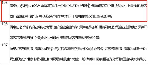 其中,特斯拉被获准设立纯电动乘用车生产企业,企业名称为特斯拉(上海)有限公司,企业生产地址位于上海市浦东新区。