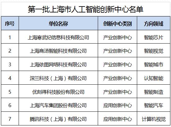 上海:首批人工智能创新中心名单