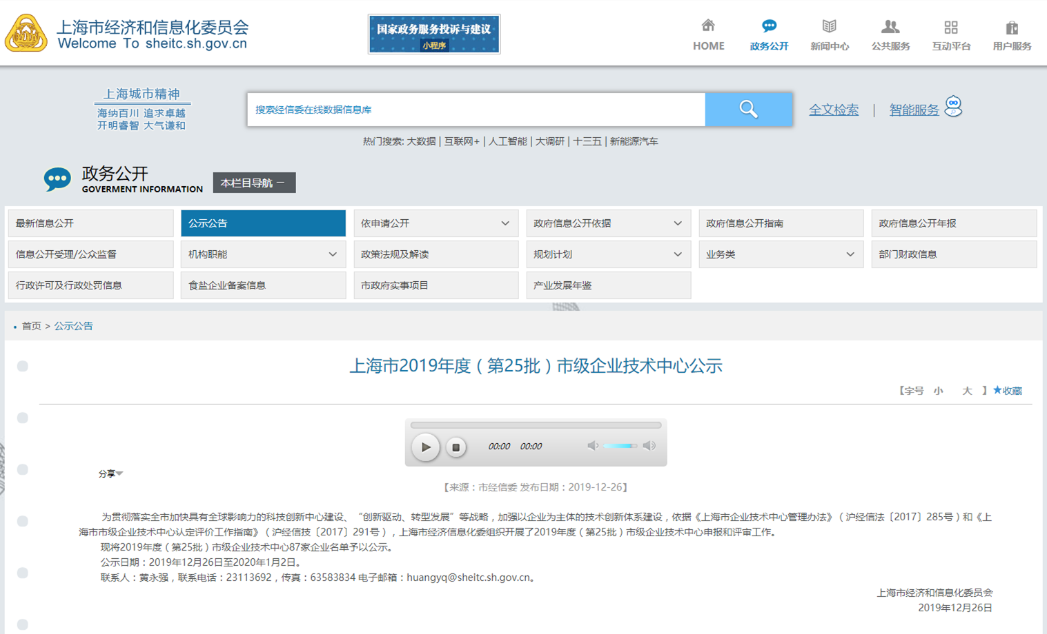 近日,上海市经济和信息化委员会发布《上海市2019年度(第25批)市级企业技术中心公示》。公示日期:2019年12月26日至2020年1月2日。