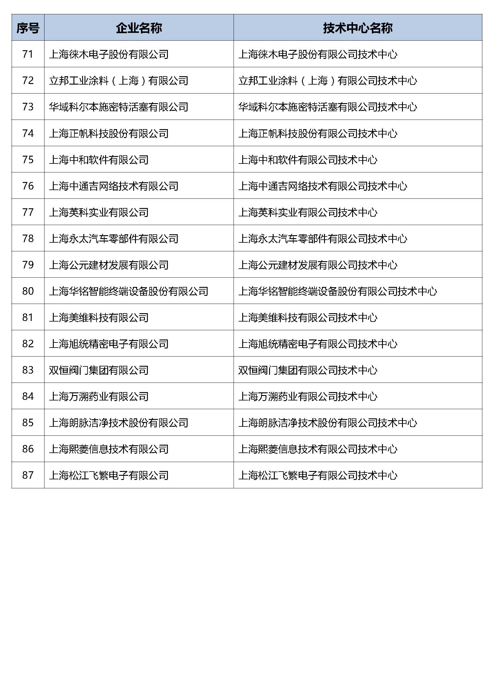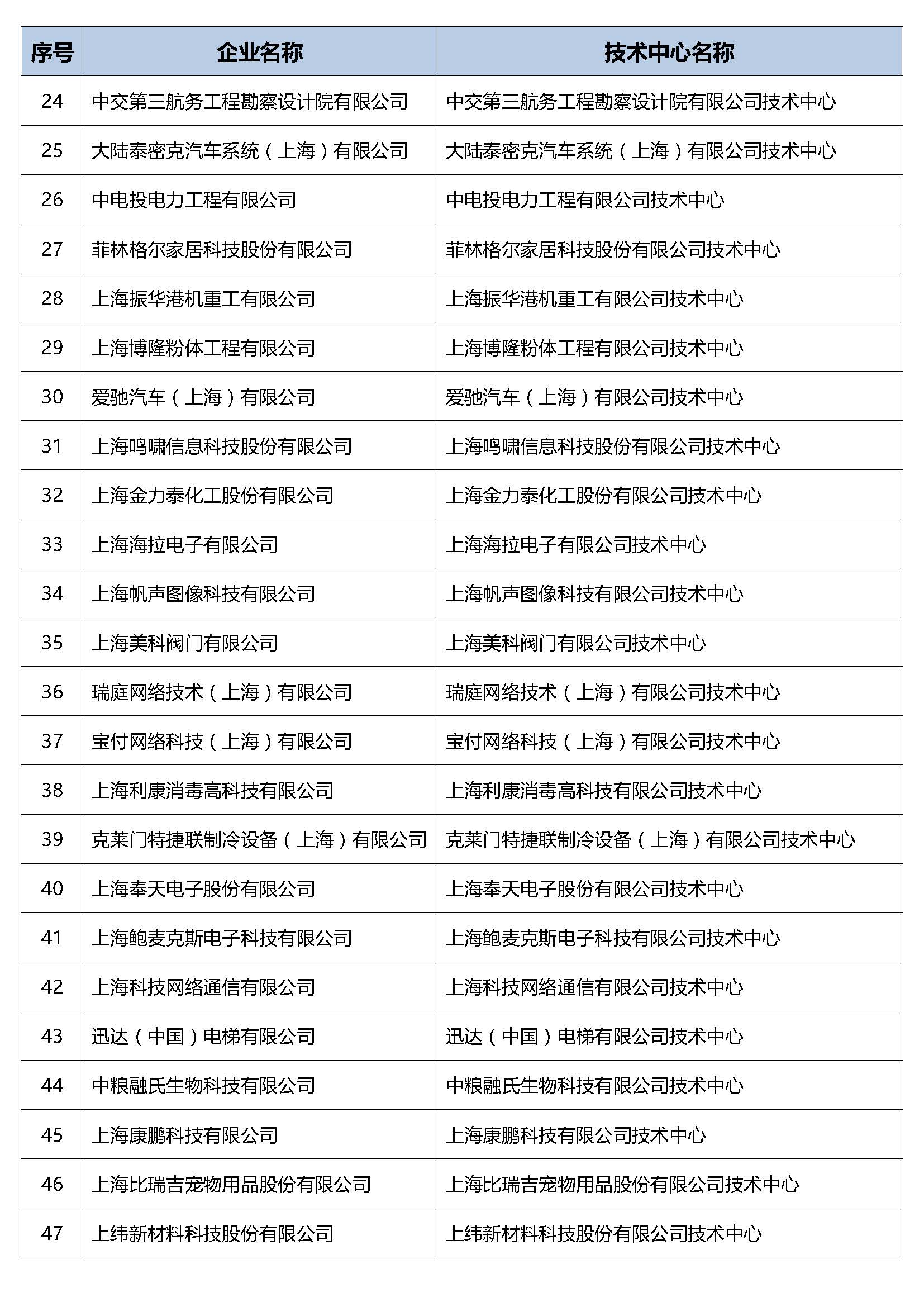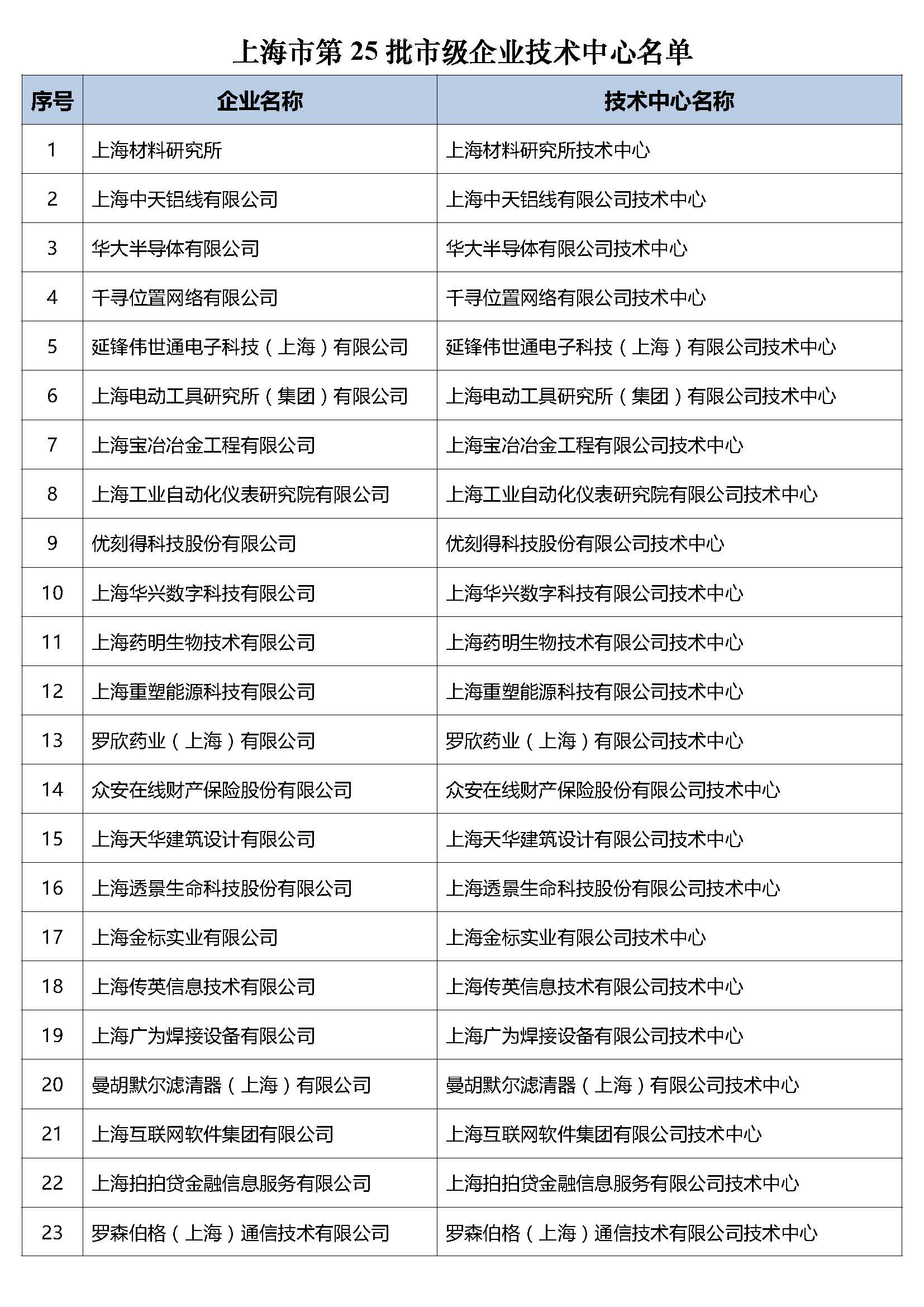 上海:2019年度(第25批)市级企业技术中心名单