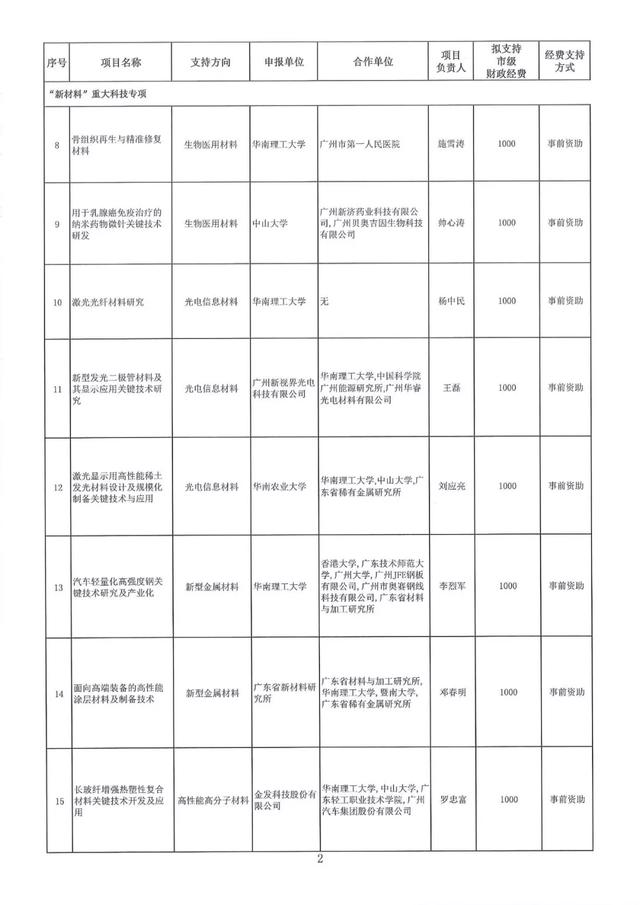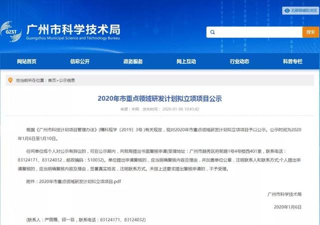 近日,广州市科学技术局发布《2020年市重点领域研发计划拟立项项目公示》。