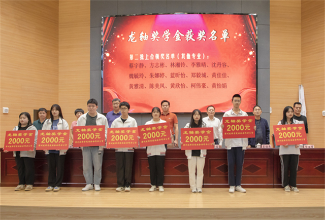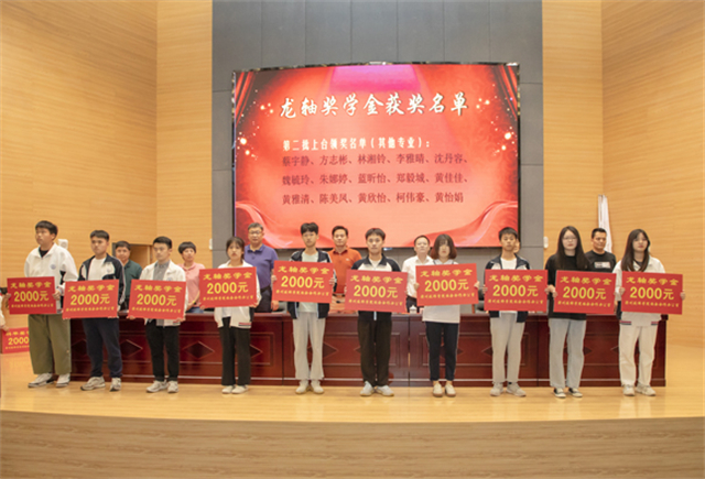 2021年11月2日下午,2020─2021学年“龙轴奖学金”颁奖仪式在漳州技师学院报告厅举行。公司党委副书记刘明福、人力资源部副部长刘鑫财出席了颁奖仪式,并与漳州技师学院院长詹百灵等校方领导一起为30名获奖学生颁发荣誉证书和每人2000元的奖学金。