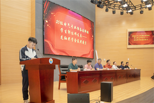 颁奖仪式上,获奖学生代表对家庭、学校的教育培养及龙轴集团的大力支持表示感谢,表示一定珍惜这份荣誉,努力学习知识技能,带动身边同学奋发向上、学有所成。
