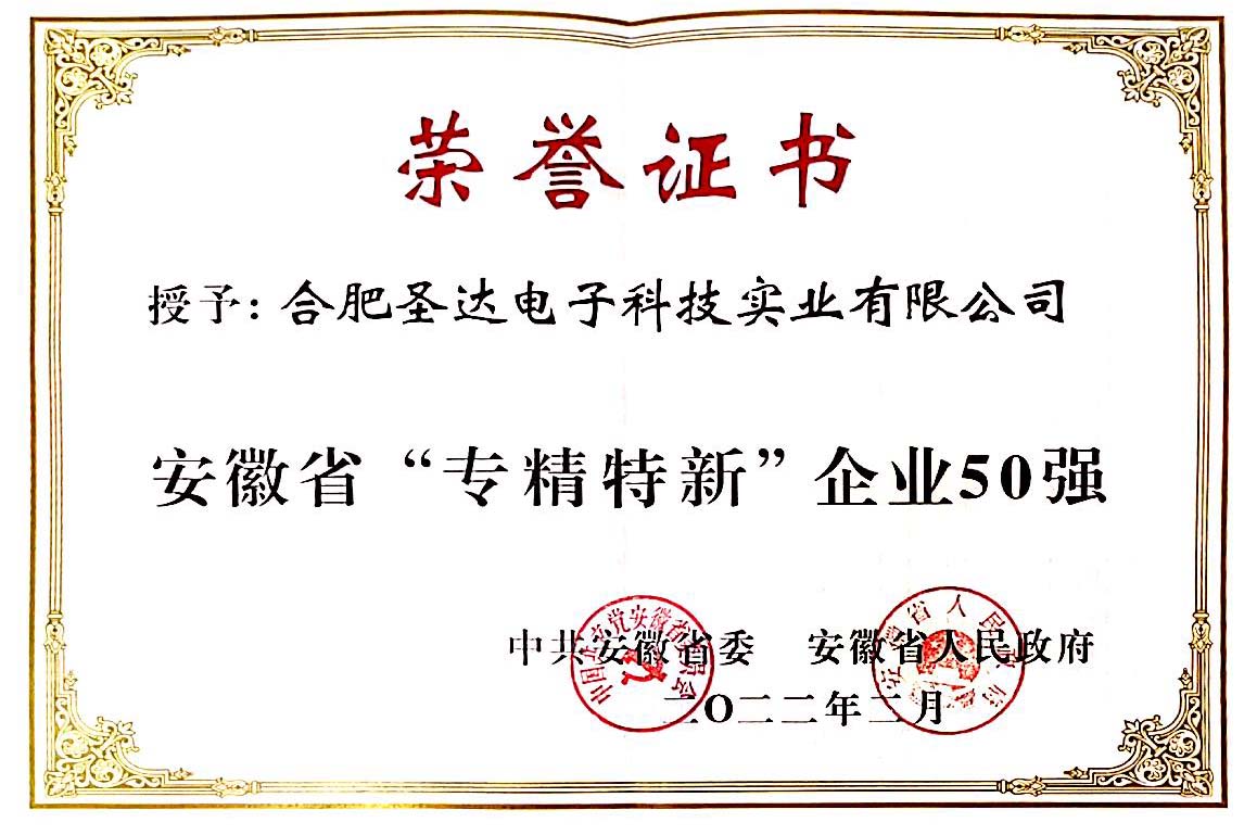 圣达科技荣获安徽省“专精特新”企业50强