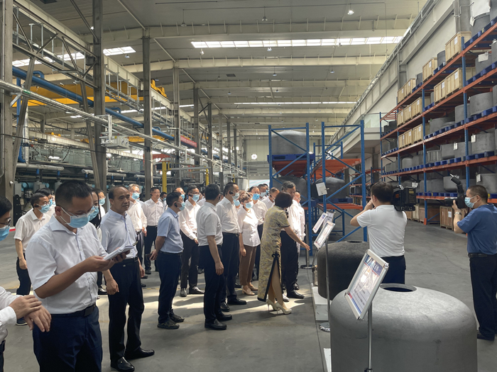 2022年6月21日,为期两天的“绵阳市园区高质量发展大会”正式启幕,由四川省委常委、绵阳市委书记曹立军带队市委、市政府、企业家等一行近80位领导莅临江油天宜上佳绿能新材料创新产业园考察调研,江油市委书记元承军、北京天宜上佳高新材料股份有限公司董事长吴佩芳陪同参观并介绍江油高新区及产业园生产经营情况。