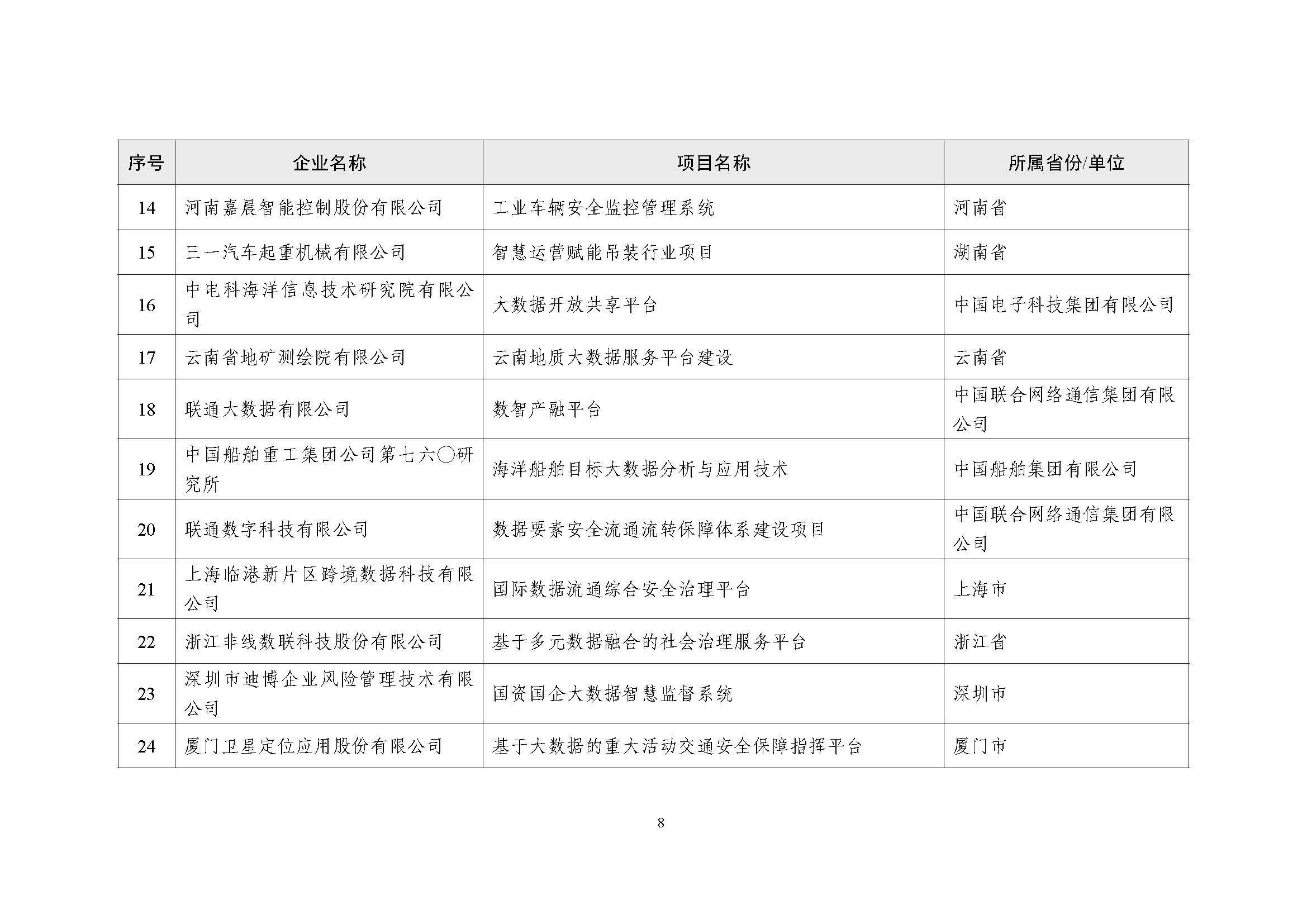 工信部:2022年大数据产业发展试点示范项目名单公示