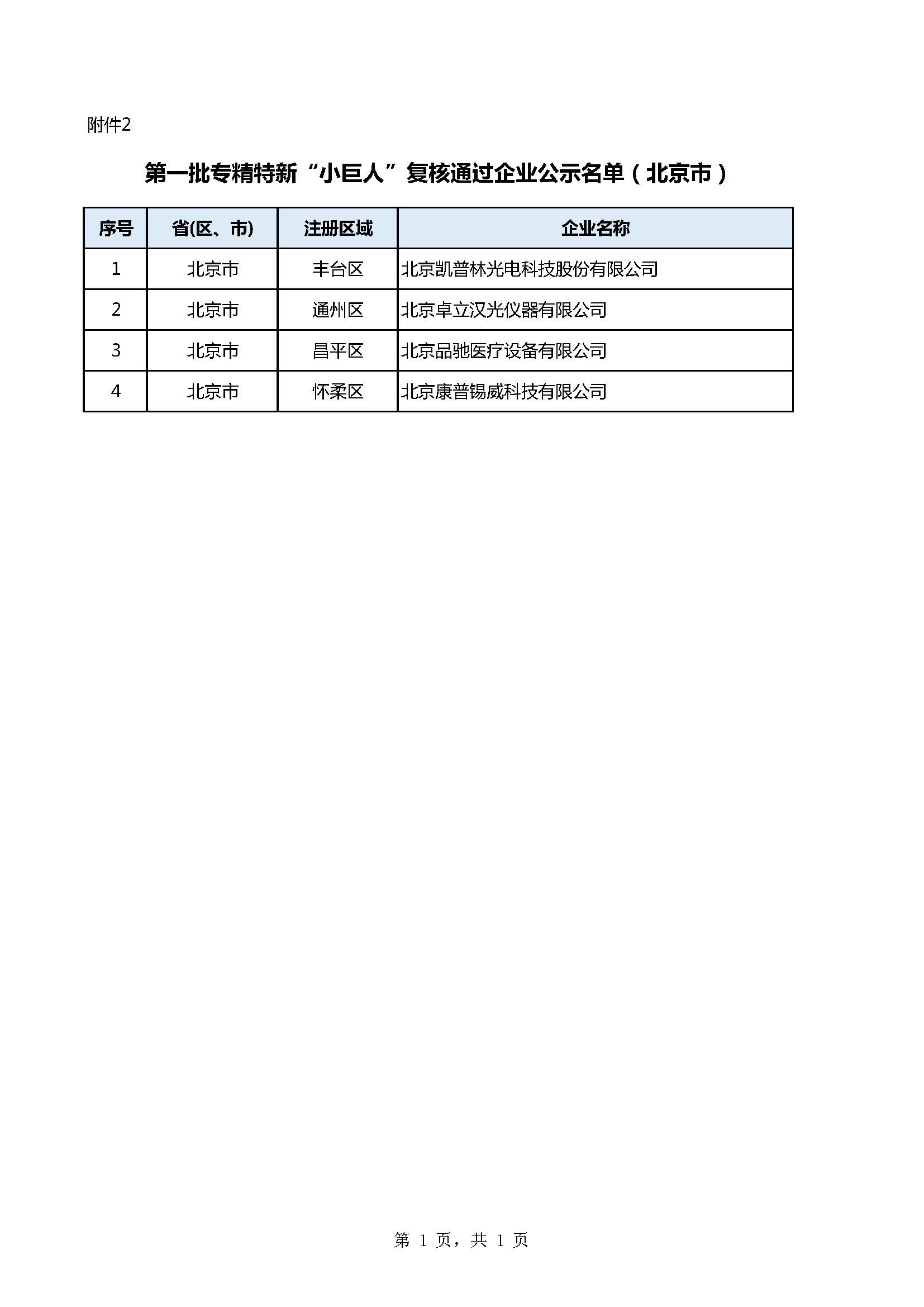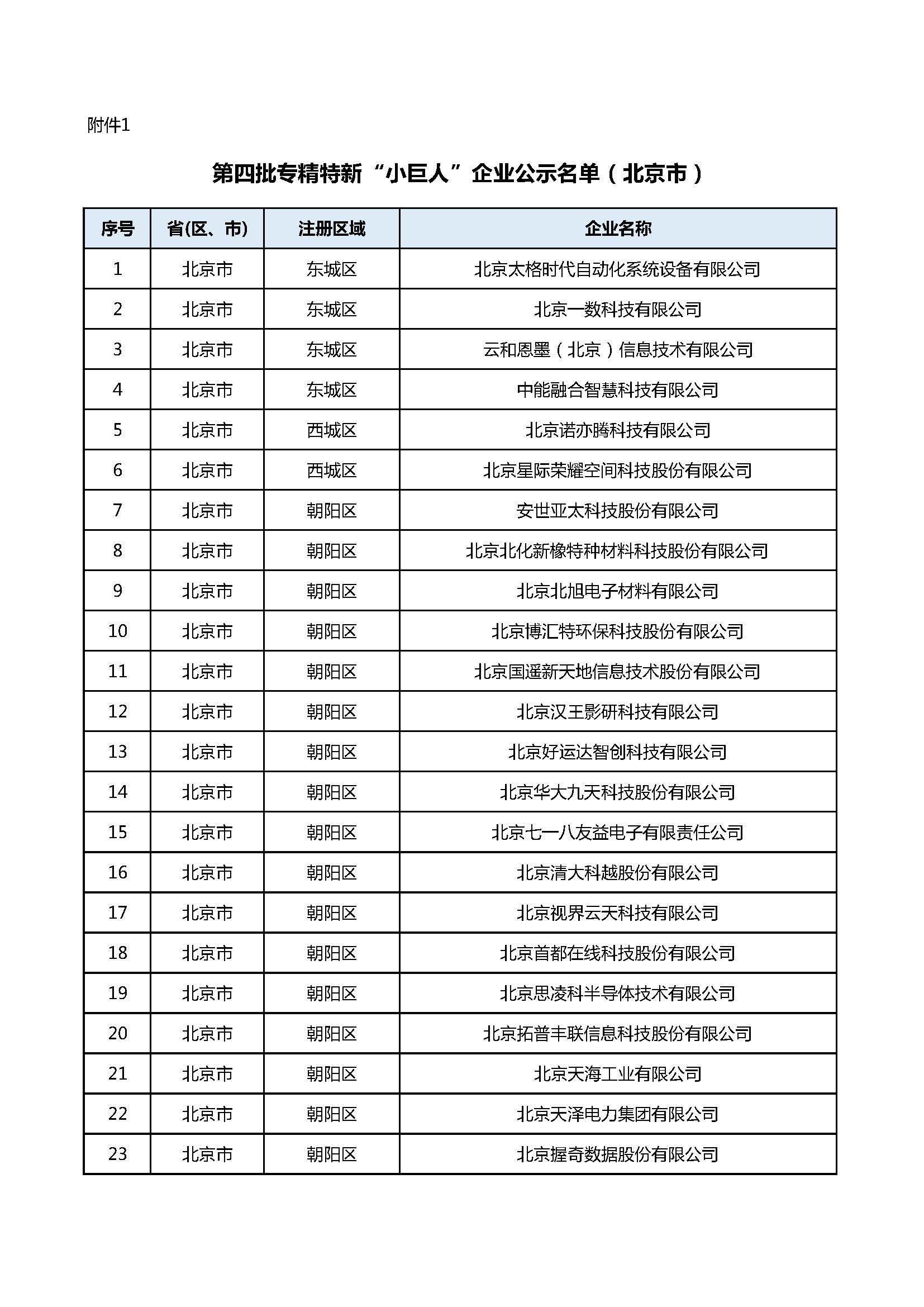 北京:第四批专精特新“小巨人”企业和第一批专精特新“小巨人”复核通过企业名单