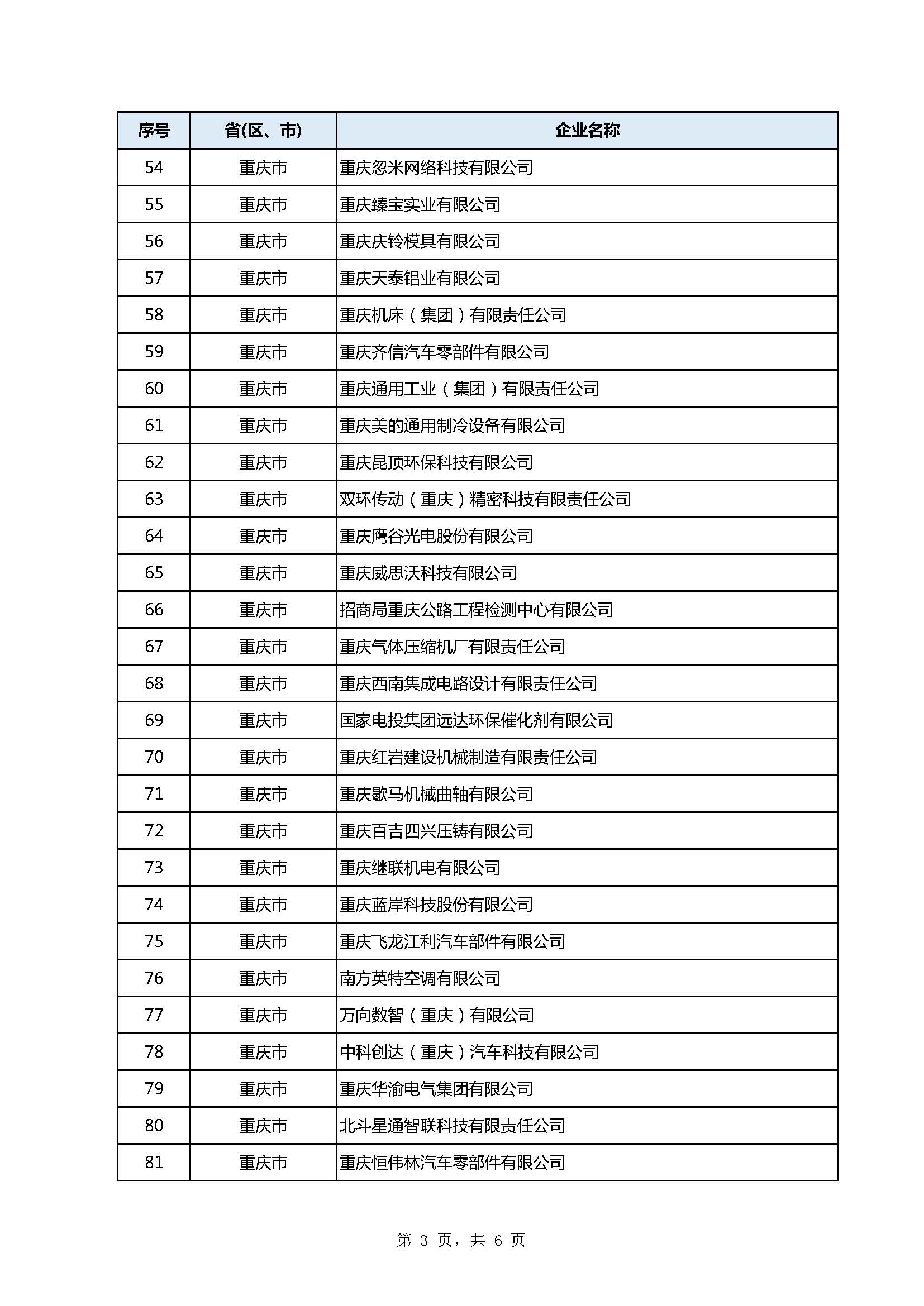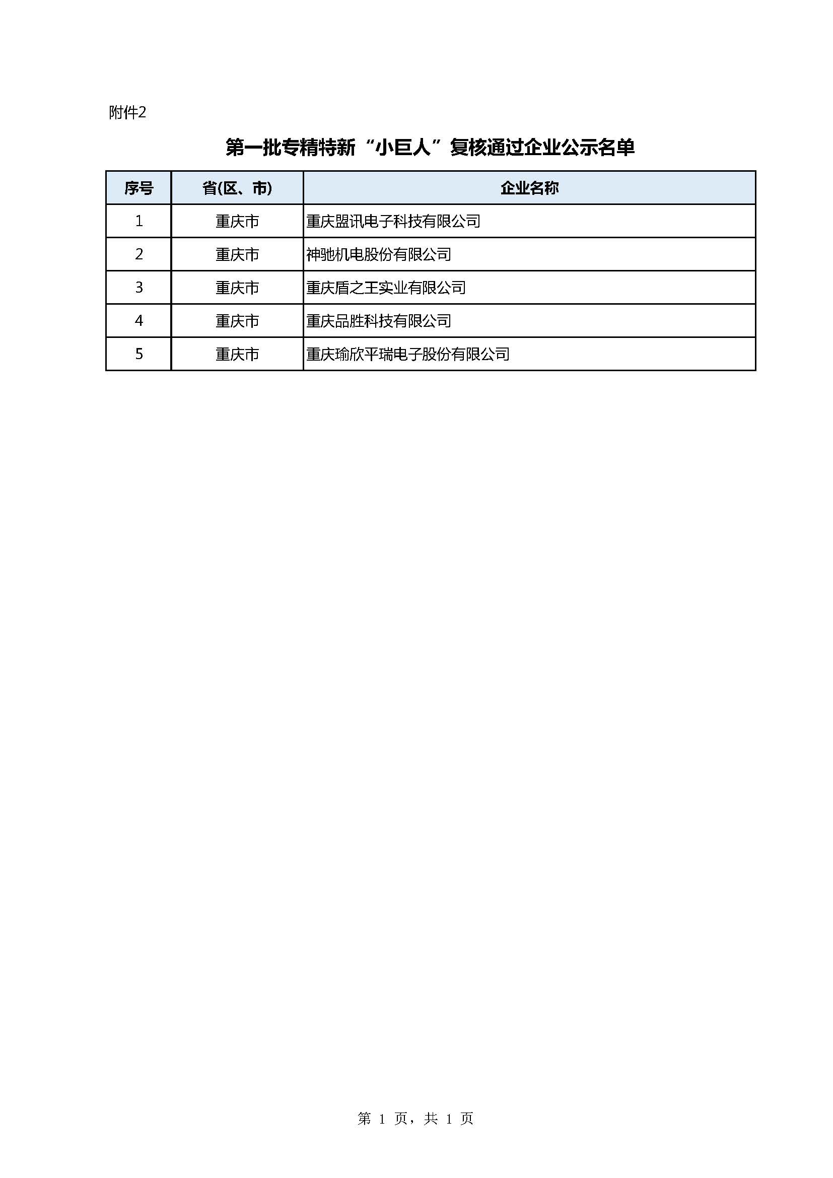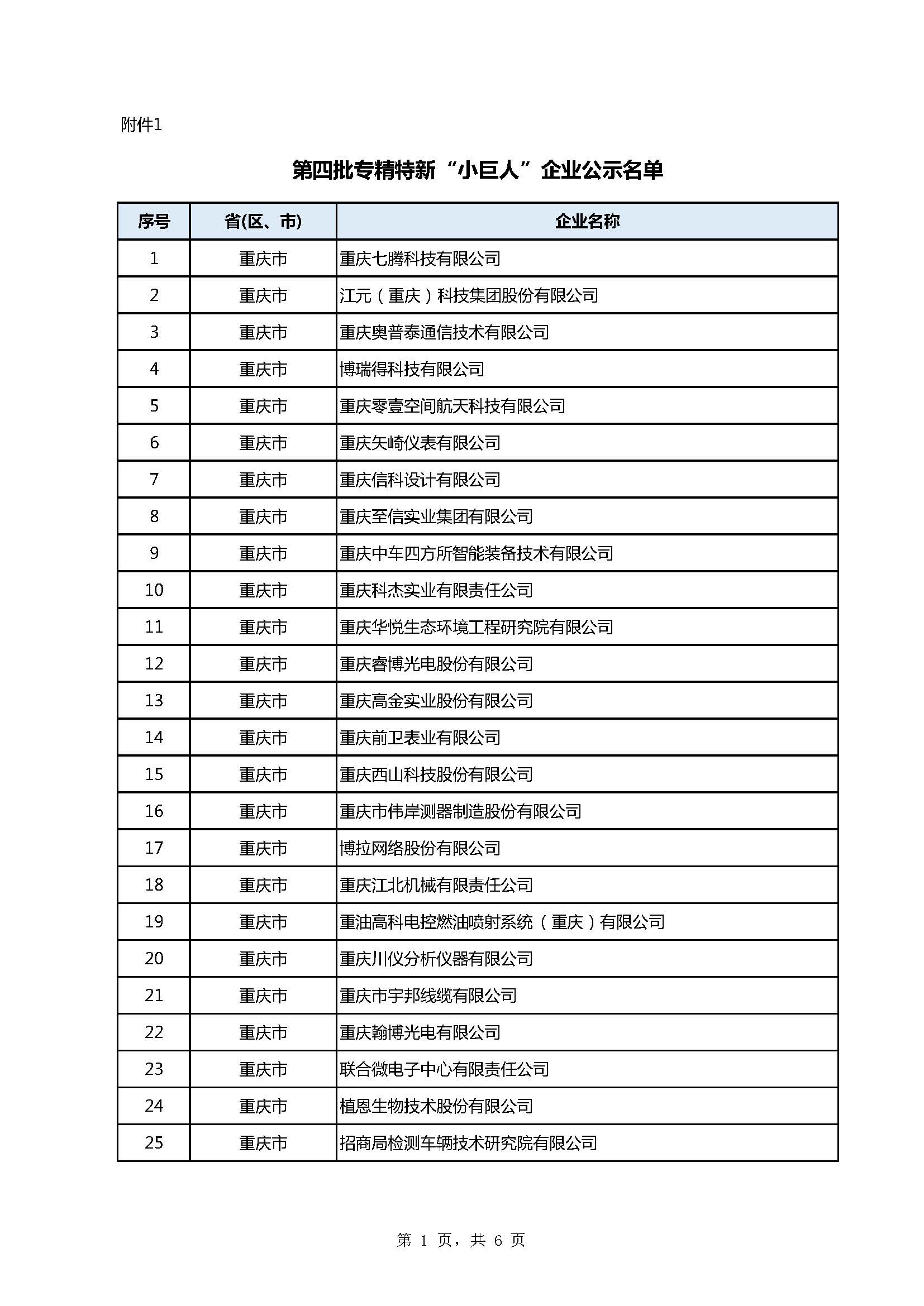 近日,重庆市经济和信息化委员会发布《关于重庆市第四批专精特新“小巨人”企业和第一批专精特新“小巨人”复核通过企业名单的公示》。为深入贯彻习近平总书记关于“培育一批‘专精特新’中小企业”的重要指示精神,落实中办、国办《关于促进中小企业健康发展的指导意见》,工业和信息化部开展了第四批专精特新“小巨人”企业培育和第一批专精特新“小巨人”企业复核工作,已完成相关审核,现将我市通过审核的企业名单予以公示(见附件1、2)。公示时间:2022年8月8日至8月12日。