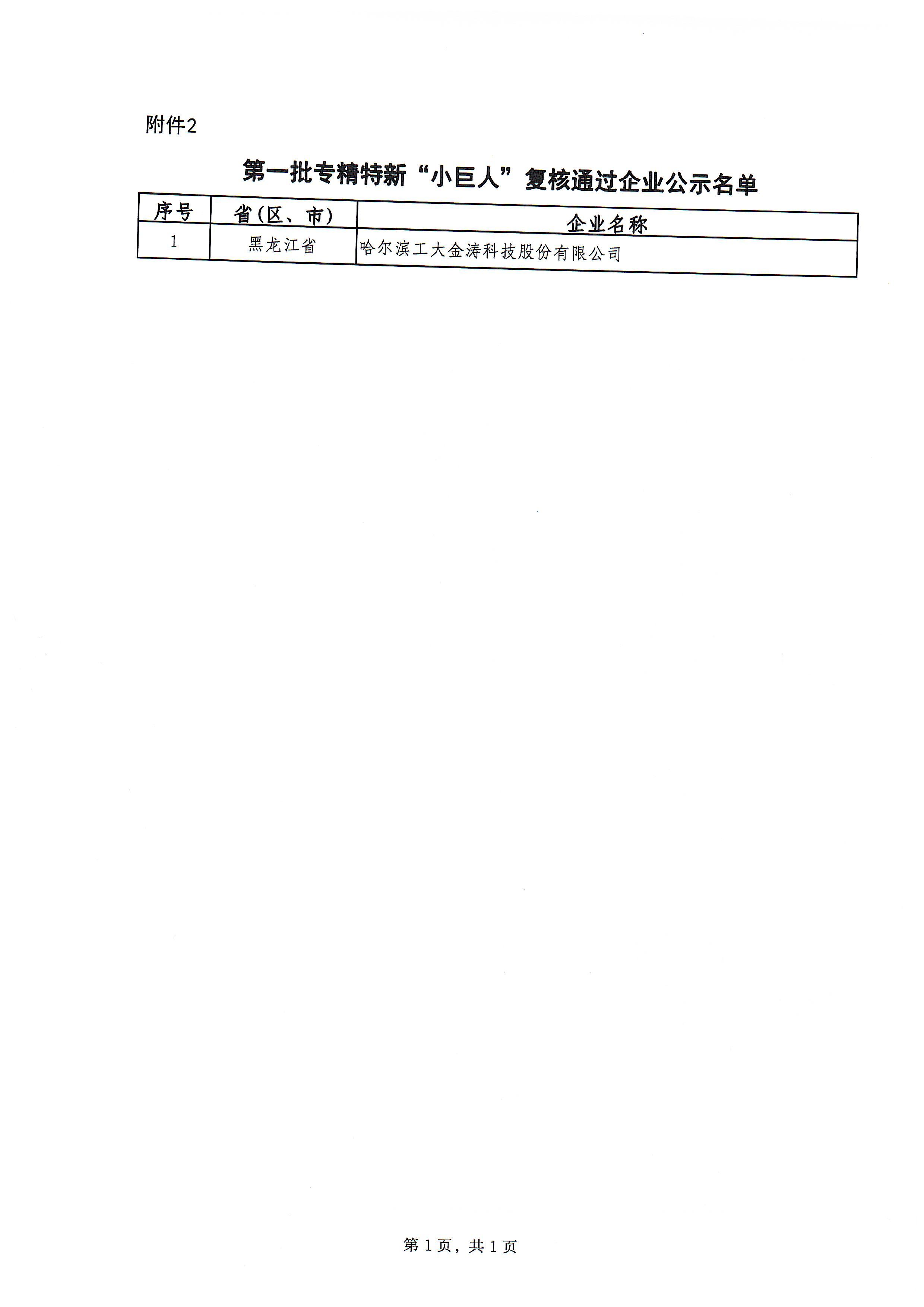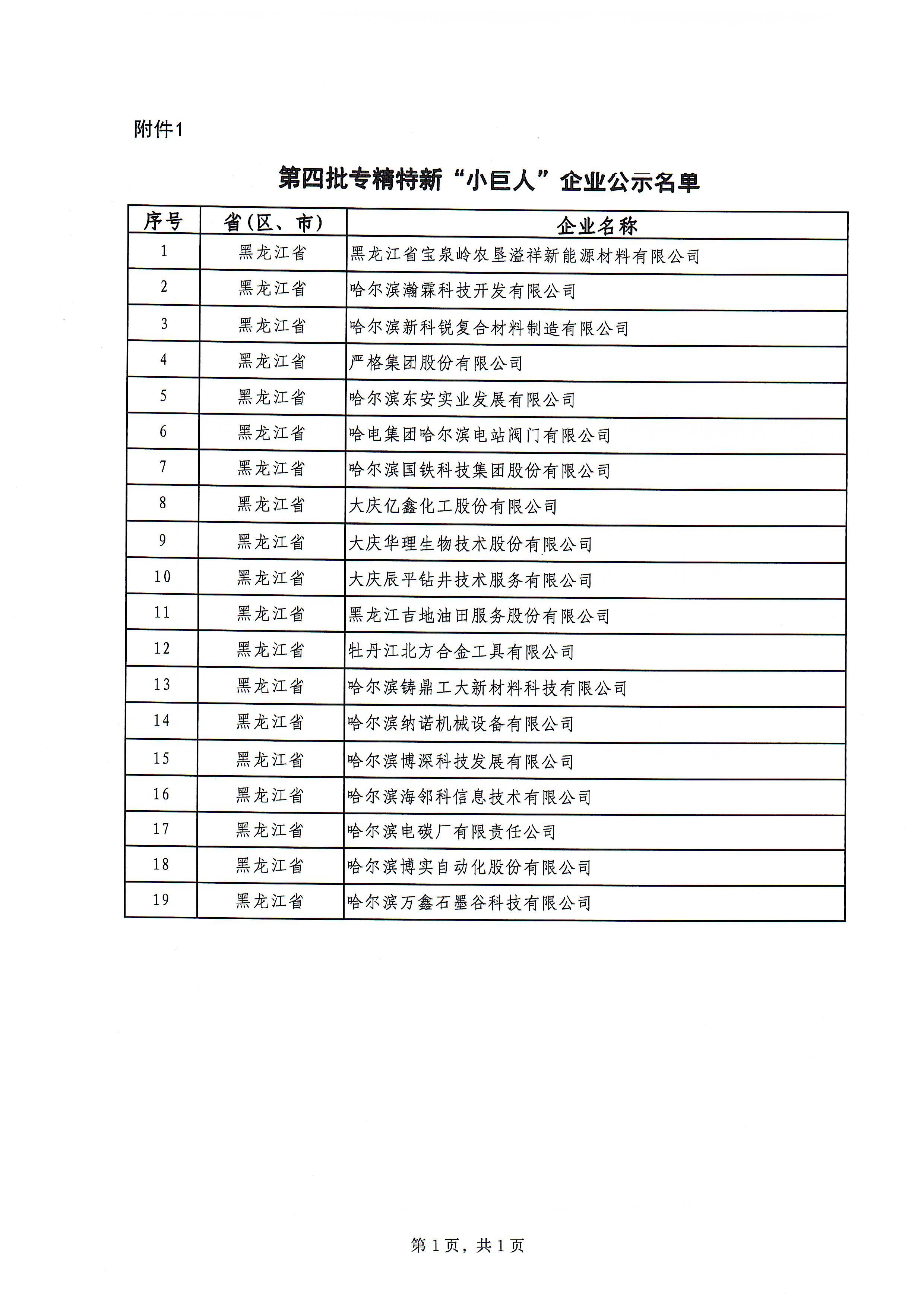 近日, 黑龙江省工业和信息化厅发布《关于黑龙江省第四批专精特新“小巨人”企业和第一批专精特新“小巨人”复核通过企业名单的公示》。为深入贯彻习近平总书记关于“培育一批‘专精特新’中小企业”的重要指示精神,落实中办、国办《关于促进中小企业健康发展的指导意见》,工业和信息化部开展了第四批专精特新“小巨人”企业培育和第一批专精特新“小巨人”企业复核工作,已完成相关审核,现将我省通过审核的企业名单予以公示(见附件1、2)。 公示时间:2022年8月8日至8月12日。