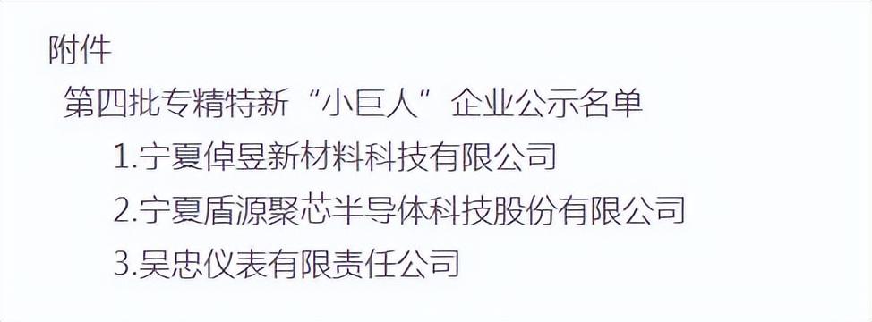 近日,宁夏回族自治区工业和信息化厅发布《关于宁夏回族自治区第四批国家级专精特新“小巨人”企业名单的公示》。为深入贯彻习近平总书记关于“培育一批‘专精特新’中小企业”的重要指示精神,落实中办、国办《关于促进中小企业健康发展的指导意见》,工业和信息化部开展了第四批专精特新“小巨人”企业培育工作,已完成相关审核,现将我区通过审核的企业名单予以公示(见附件)。公示时间:2022年8月8日至8月12日。
