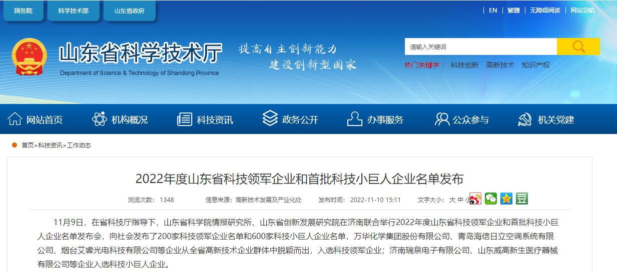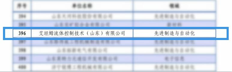 11月9日,在省科技厅指导下,山东省科学院情报研究所、山东省创新发展研究院在济南联合举行2022年度山东省科技领军企业和首批科技小巨人企业名单发布会,向社会发布了200家科技领军企业名单和600家科技小巨人企业名单,艾坦姆流体控制技术(山东)有限公司成功获批山东省科技小巨人企业称号,标志着公司在科技创新领域的努力受到了政府部门的高度认可,彰显了企业创新能力,肯定了公司发展的潜力和前景。
