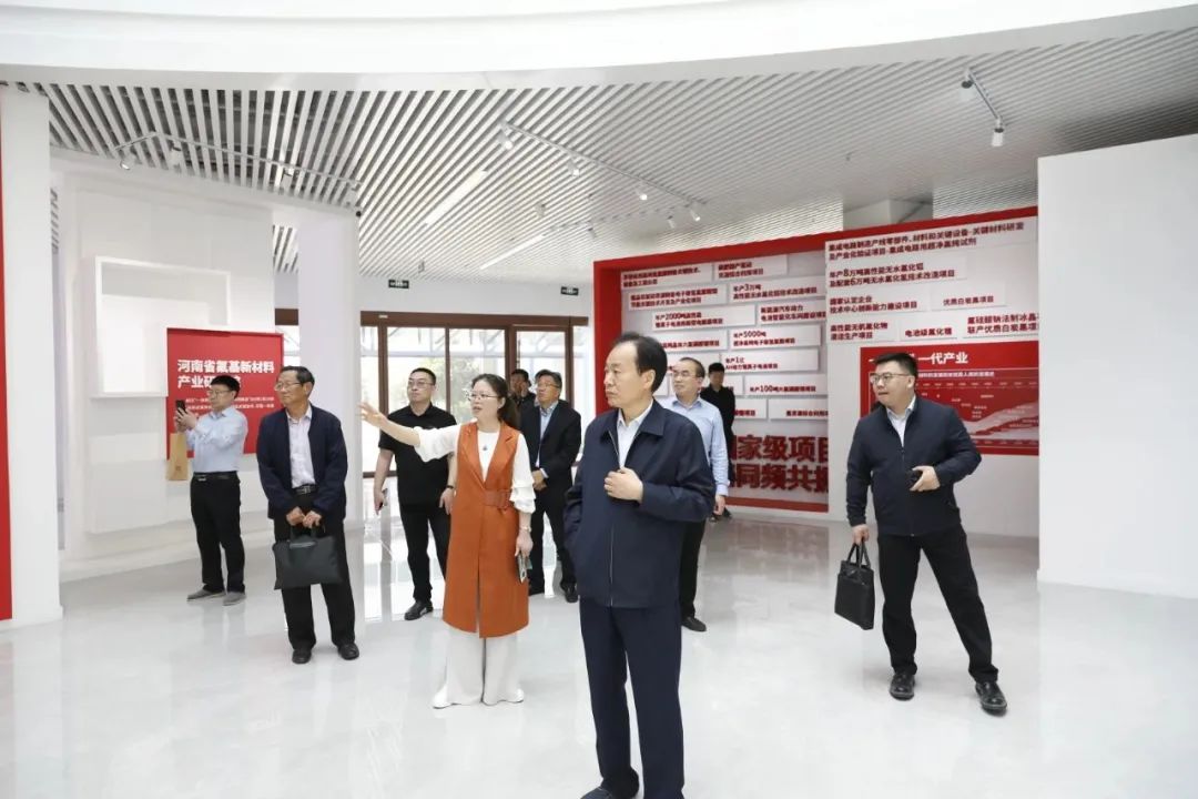 李涛一行先后参观了氟基新材料产业研究院、年产6Gwh锂离子电池项目,详细了解了研究院的整体概况和解决“卡脖子”技术难题方面的进展,认真听取了锂电池的生产过程、市场形势和公司产业布局等相关介绍。