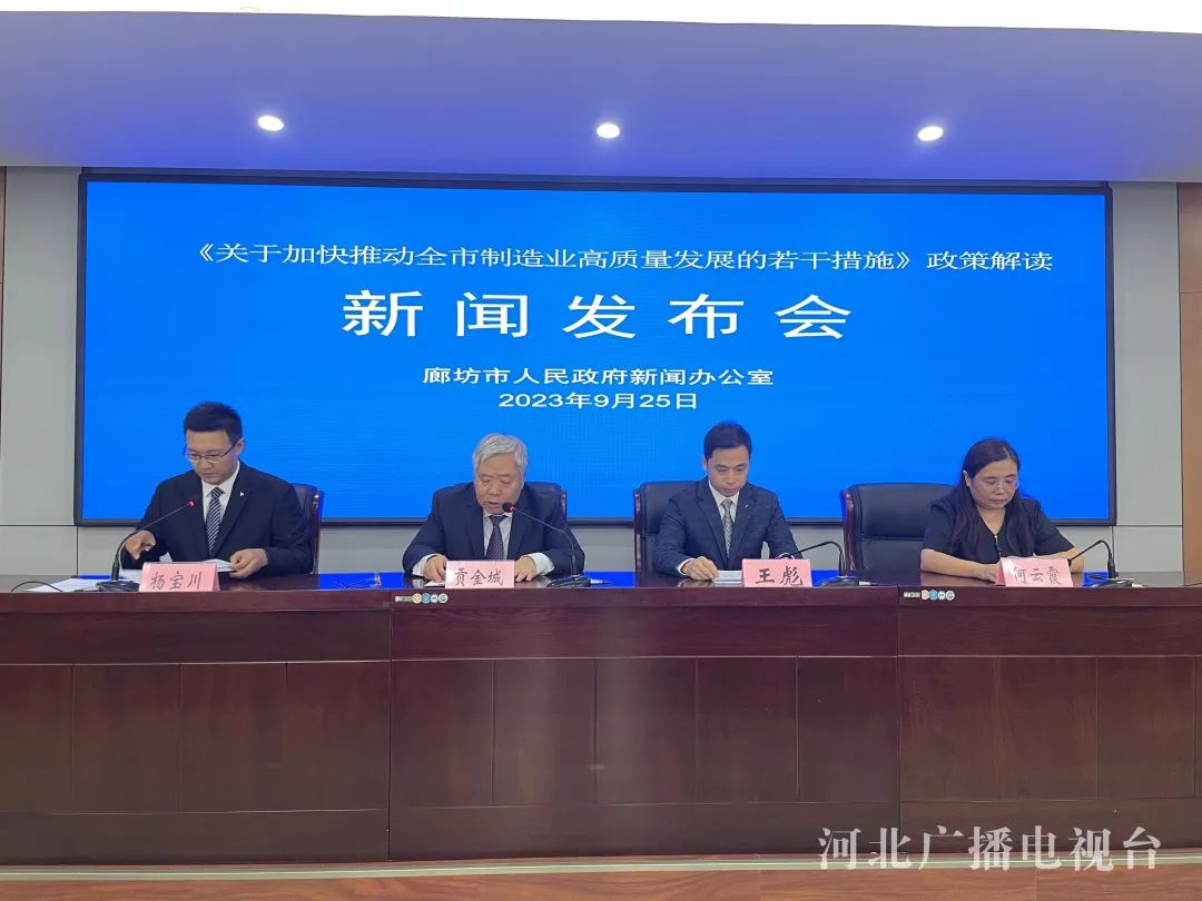 9月25日,从廊坊市政府新闻办召开的新闻发布会上获悉,廊坊市印发实施《关于加快推动全市制造业高质量发展的若干措施》,出台7个方面25条措施,“真金白银”奖励支持招商引资、科技创新、并购合作、金融贷款等工作,加快构筑现代化产业体系,推动全市制造业高质量发展。
