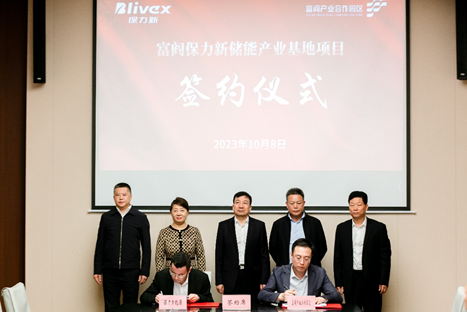 2023年10月8日,保力新能源科技股份有限公司与富阎产业合作园区管理委员会在富阎产业合作园区举行富阎保力新储能产业基地项目签约仪式。