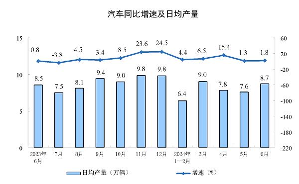 聚焦汽车领域,6月汽车制造业工业增加值增长6.8% 上半年累计同比增长9.8%。