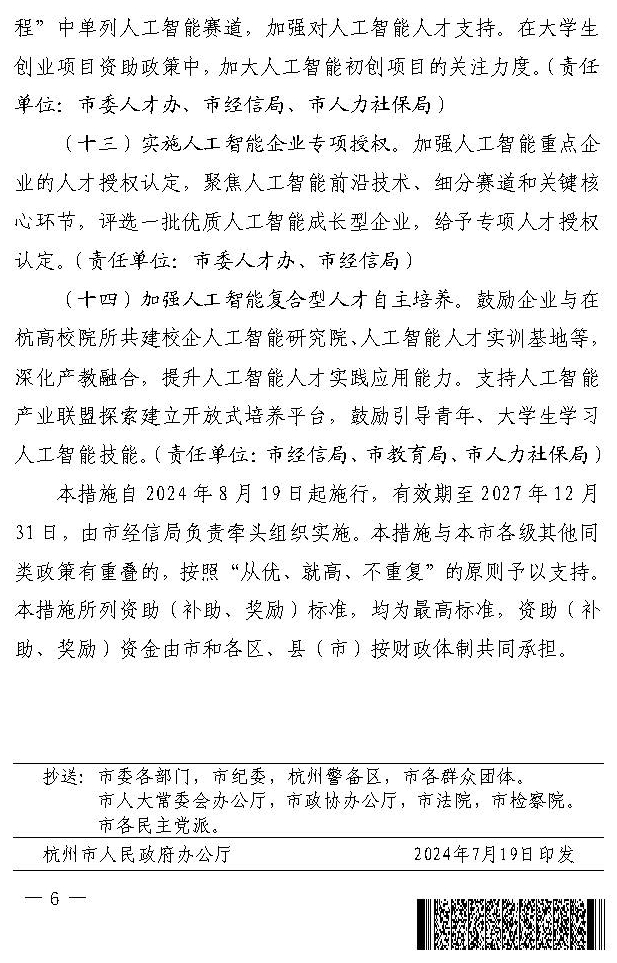 加强优质企业引育。围绕智能算力、大模型和应用赋能等全产业链领域,大力引育处于产业链关键环节、拥有自主核心技术、高成长型的新势力企业,支持符合条件的企业申报杭州总部企业。加快培育具有产业链控制能力和国际竞争力的领军企业,对首次认定的制造业“单项冠军”企业、国家专精特新“小巨人”企业、省“隐形冠军”企业,按有关政策给予奖励。