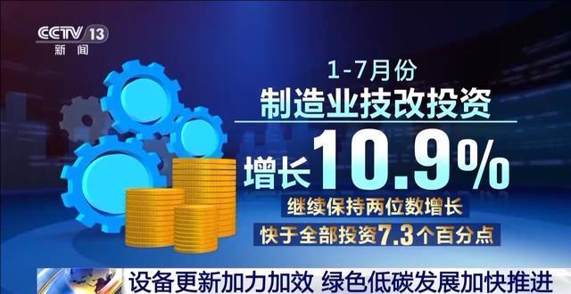 最新数据显示,在大规模设备更新政策带动下,1—7月份,制造业技改投资增长10.9%,继续保持两位数增长,快于全部投资7.3个百分点 工业领域能源利用效率持续提升,我国单位GDP能耗进一步下降,绿色低碳发展加快推进。