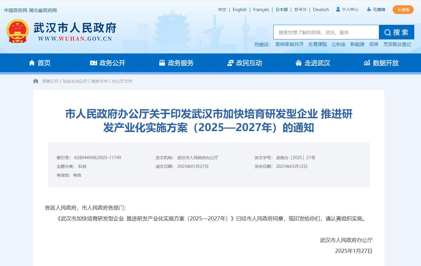 3月12日,《武汉市加快培育研发型企业推进研发产业化实施方案(2025—2027年)》发布,提出武汉将结合优势产业布局,因地制宜打造3—5个高水平研发型企业集群。