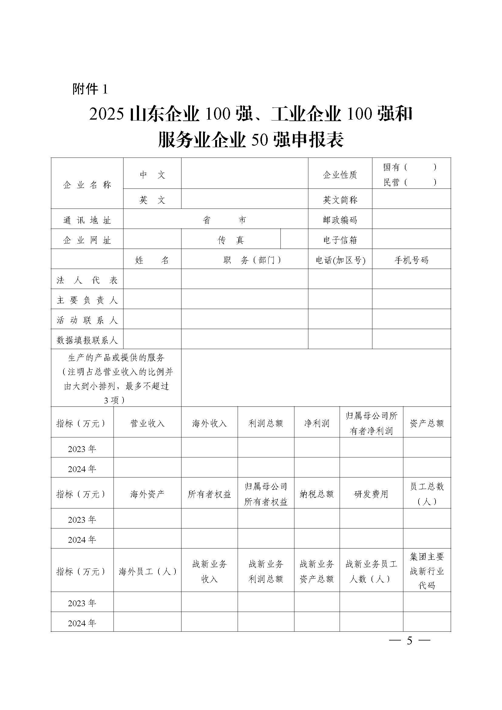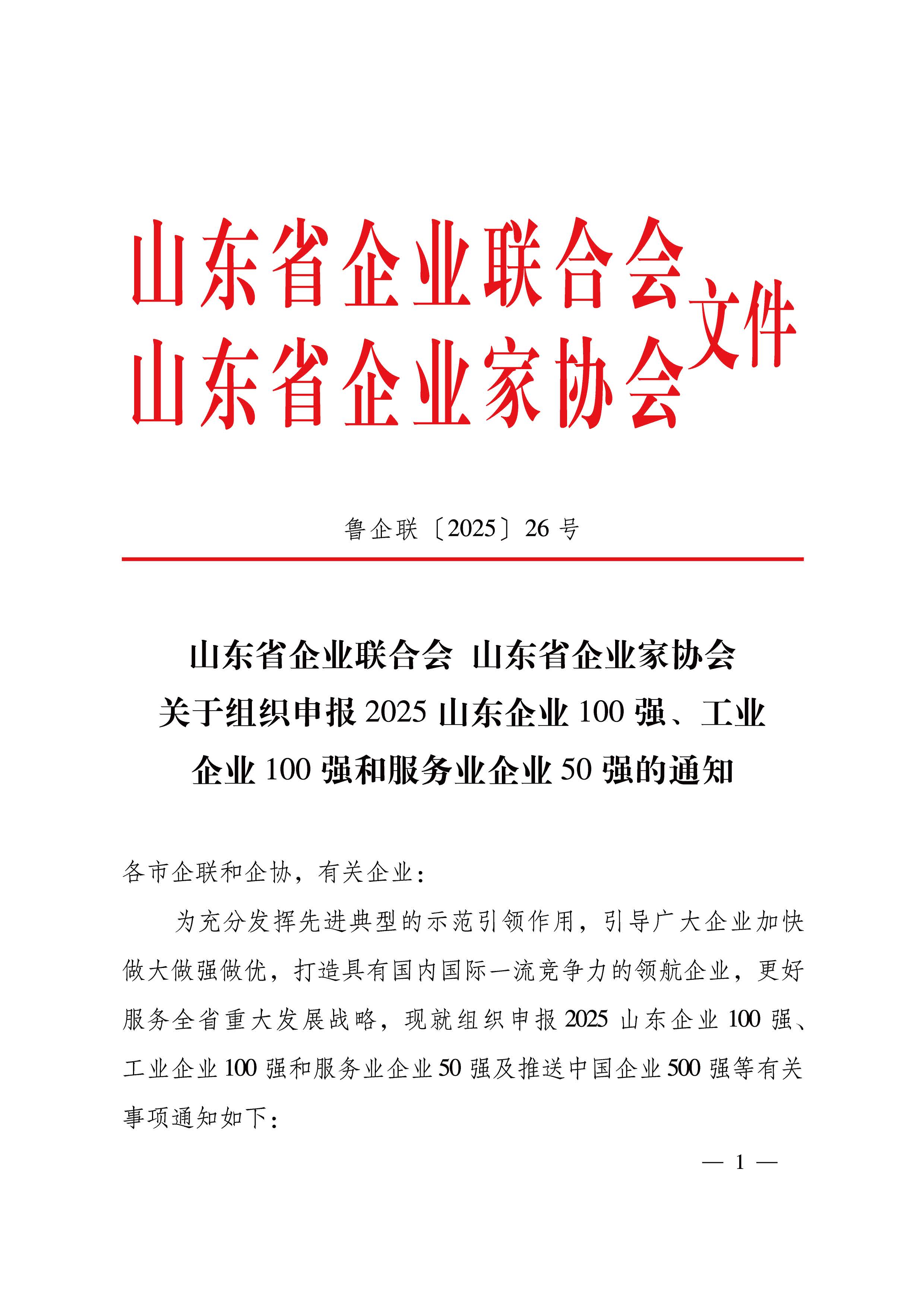 关于组织申报2025山东企业100强、工业 企业100强和服务业企业50强的通知