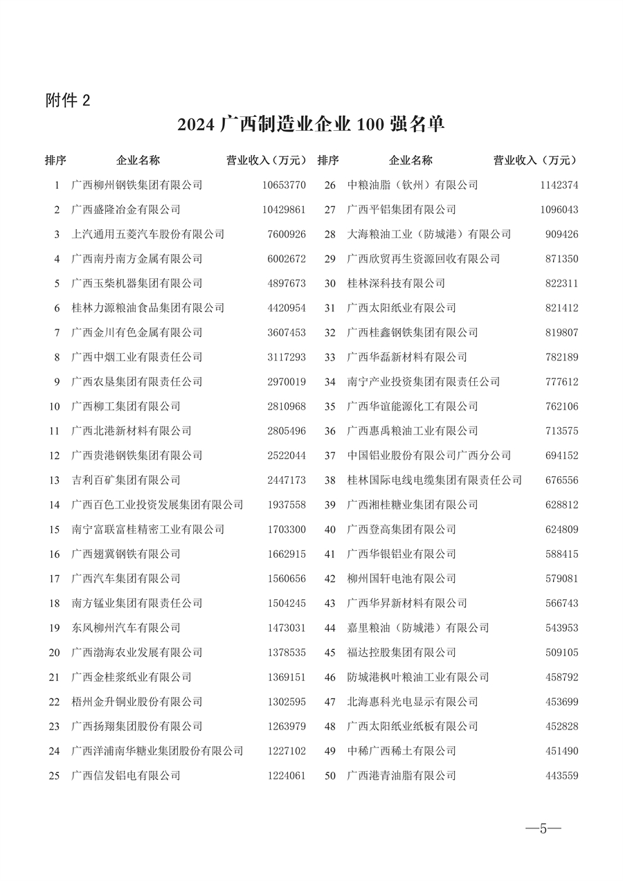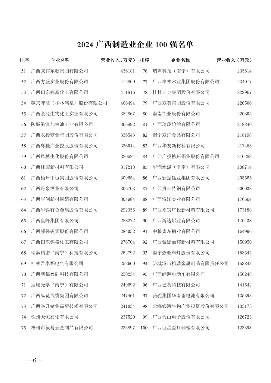 2024广西制造业企业100强