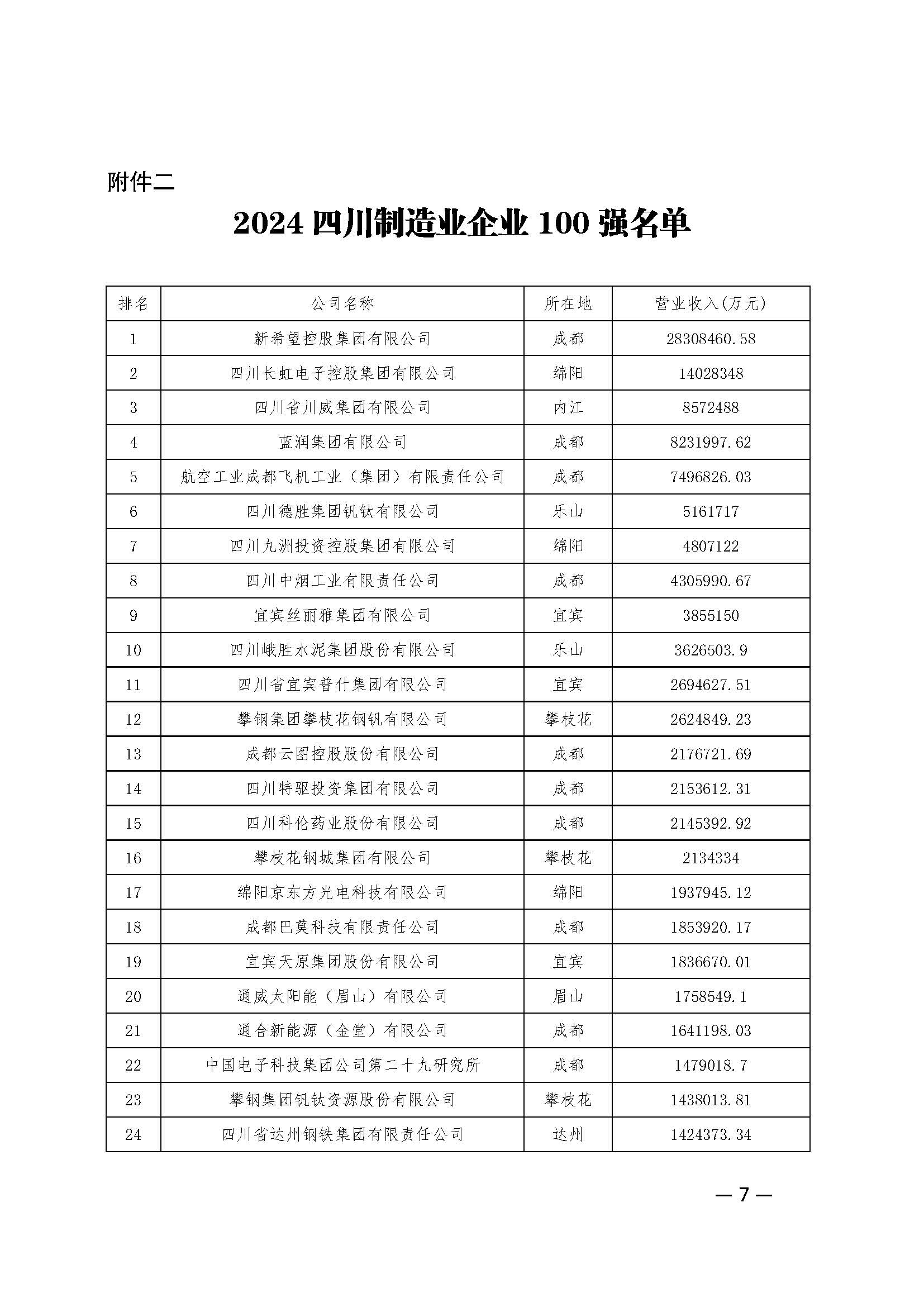 2024四川制造业企业100强名单